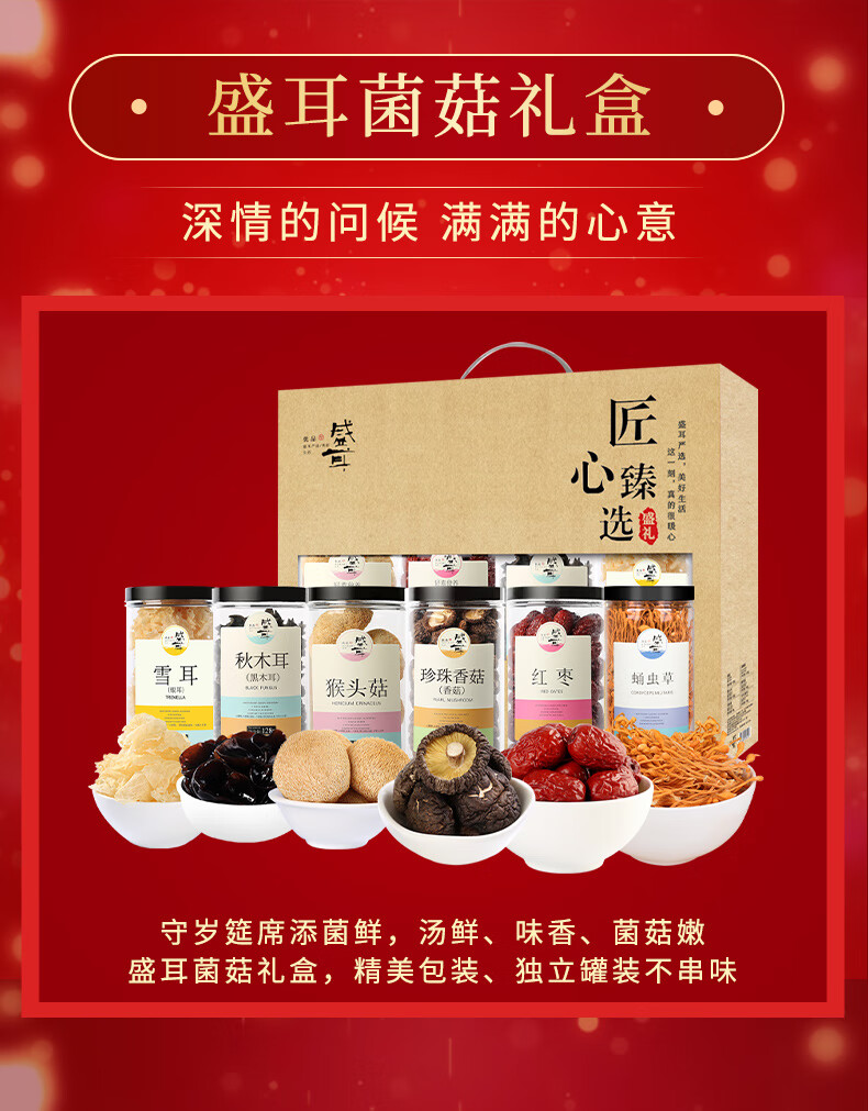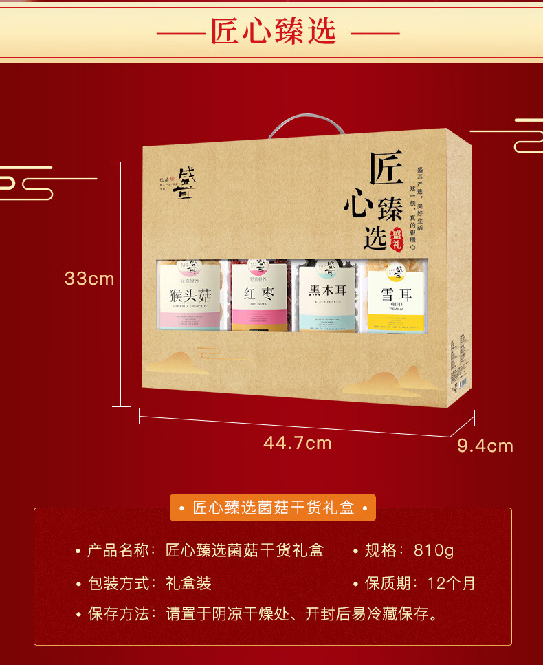 商品名称:【京东/顺丰配送】盛耳匠心臻选菌菇干货礼盒810g