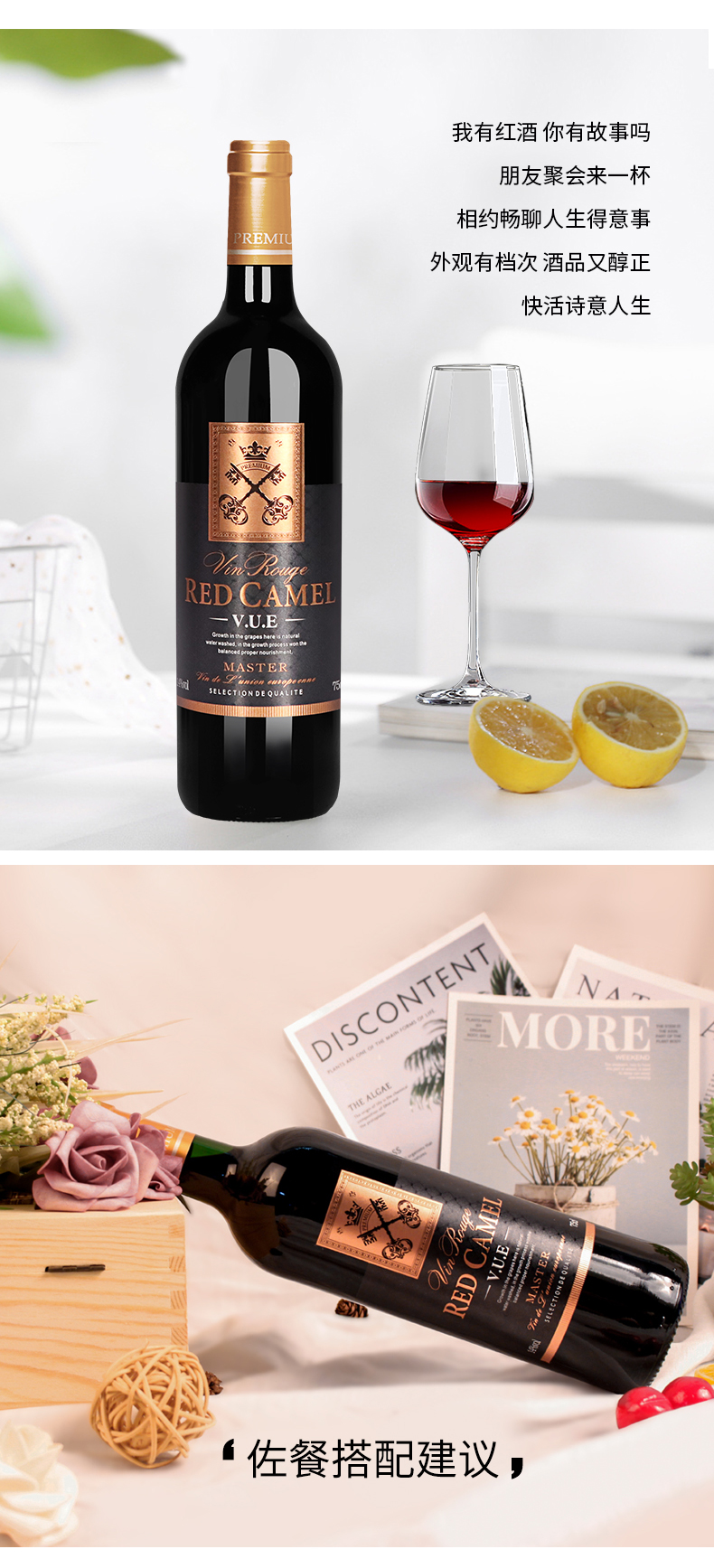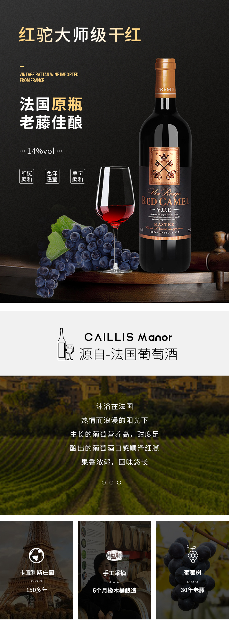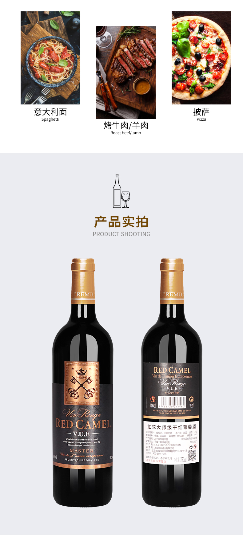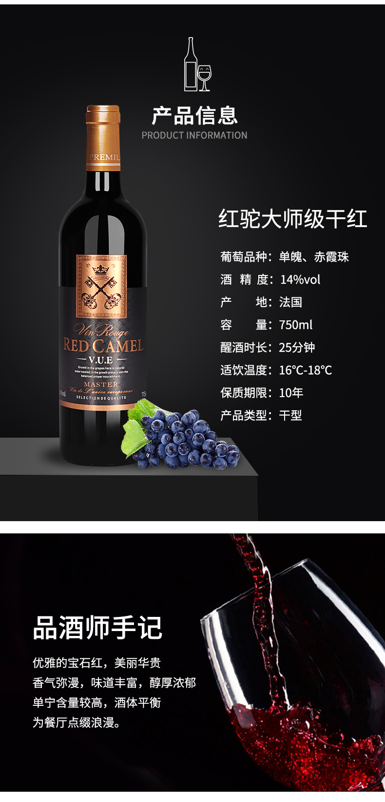 商品名称:法国原瓶原装进口醉红驼大师级干红葡萄酒红酒整箱赤霞珠红酒送礼