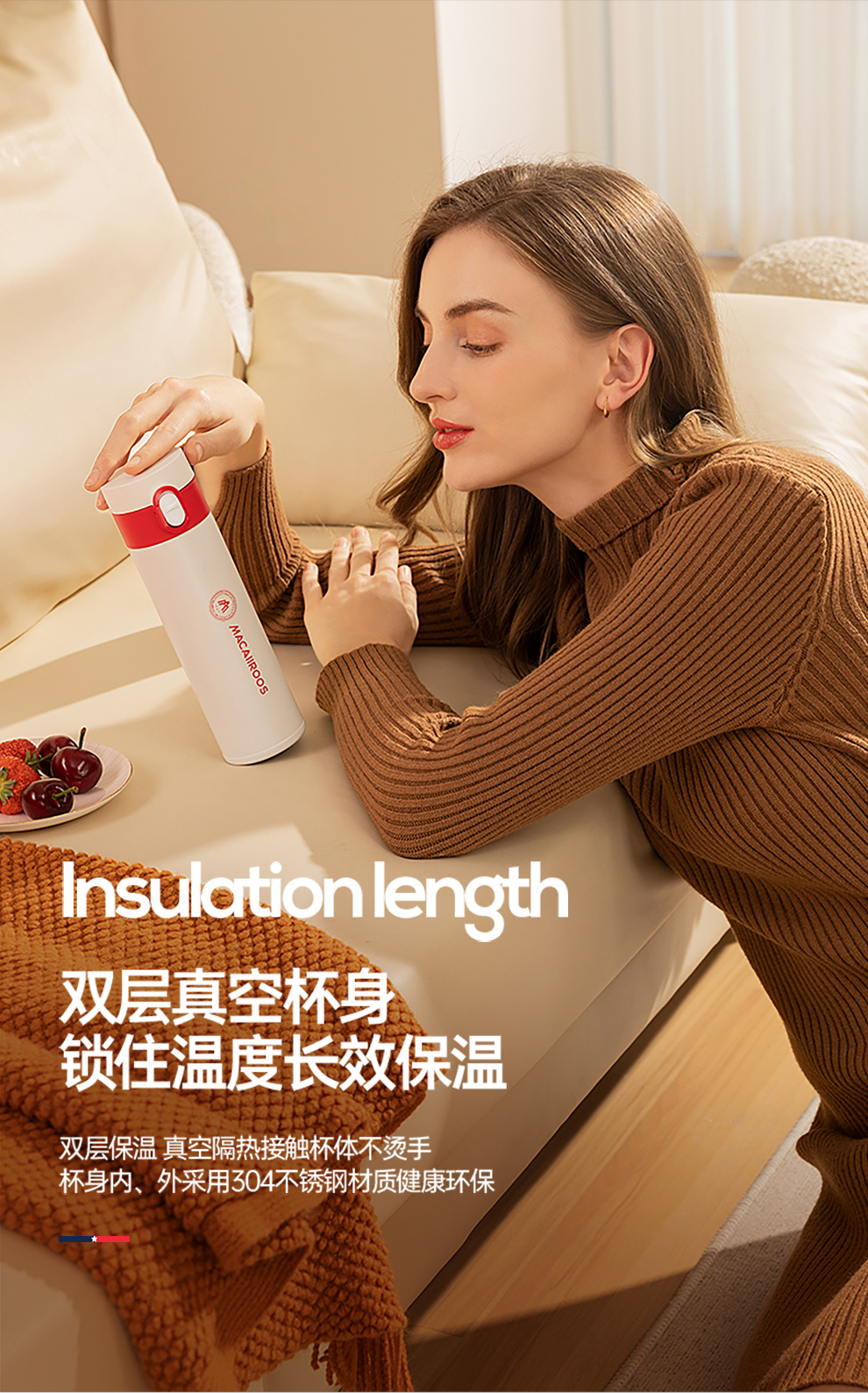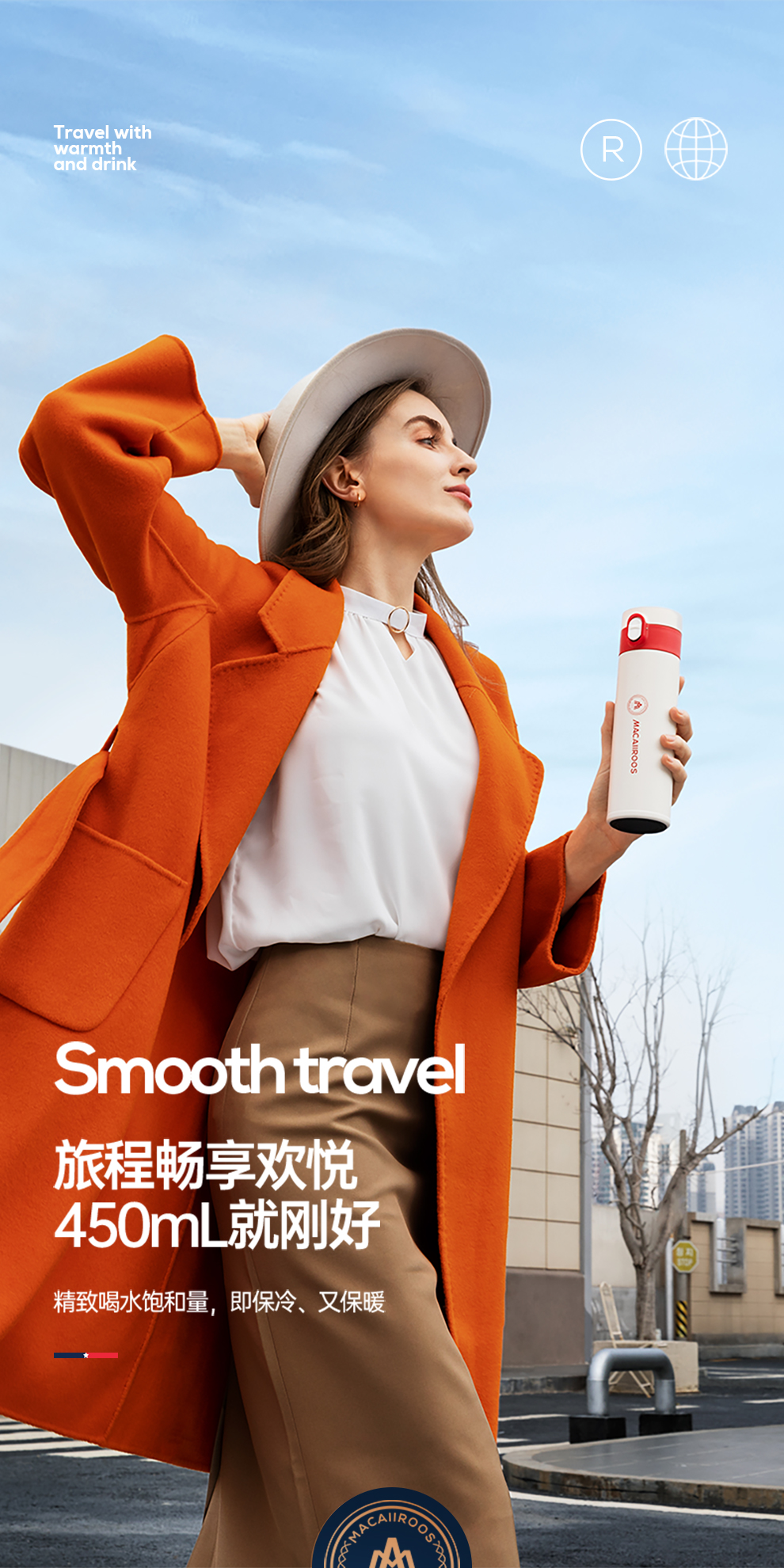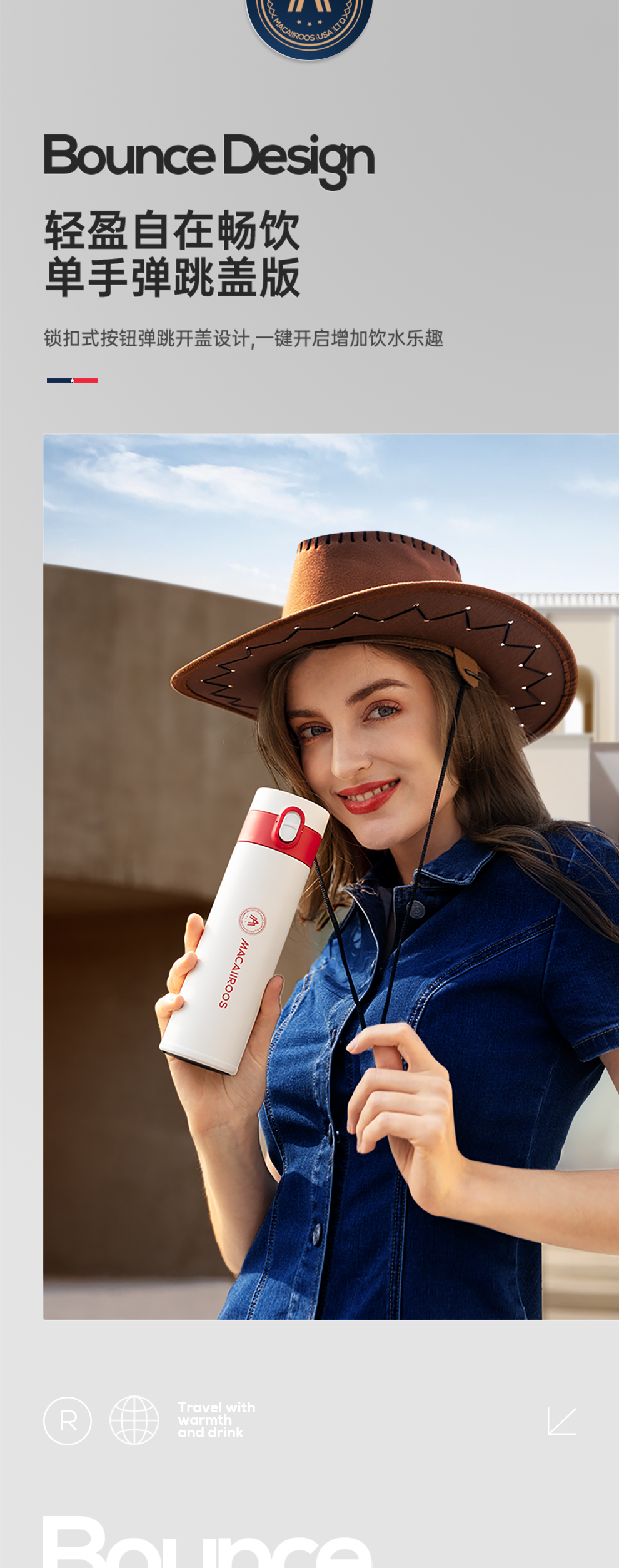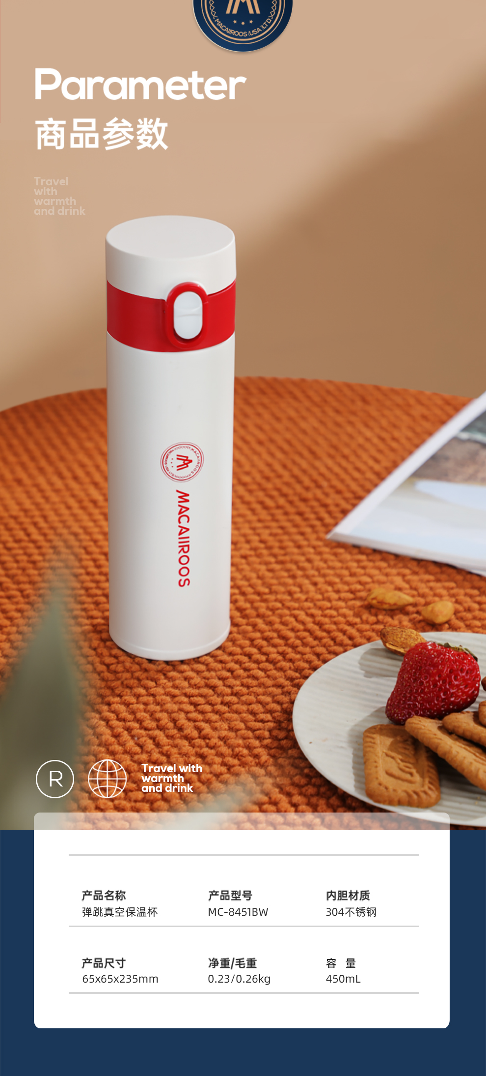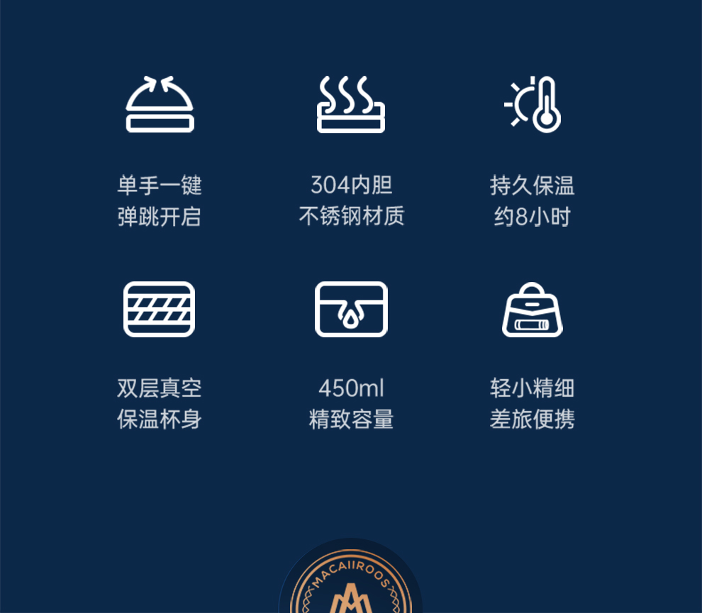 商品名称:MACAIIROOS/迈卡罗450毫升弹跳真空保温杯MC-8451BW