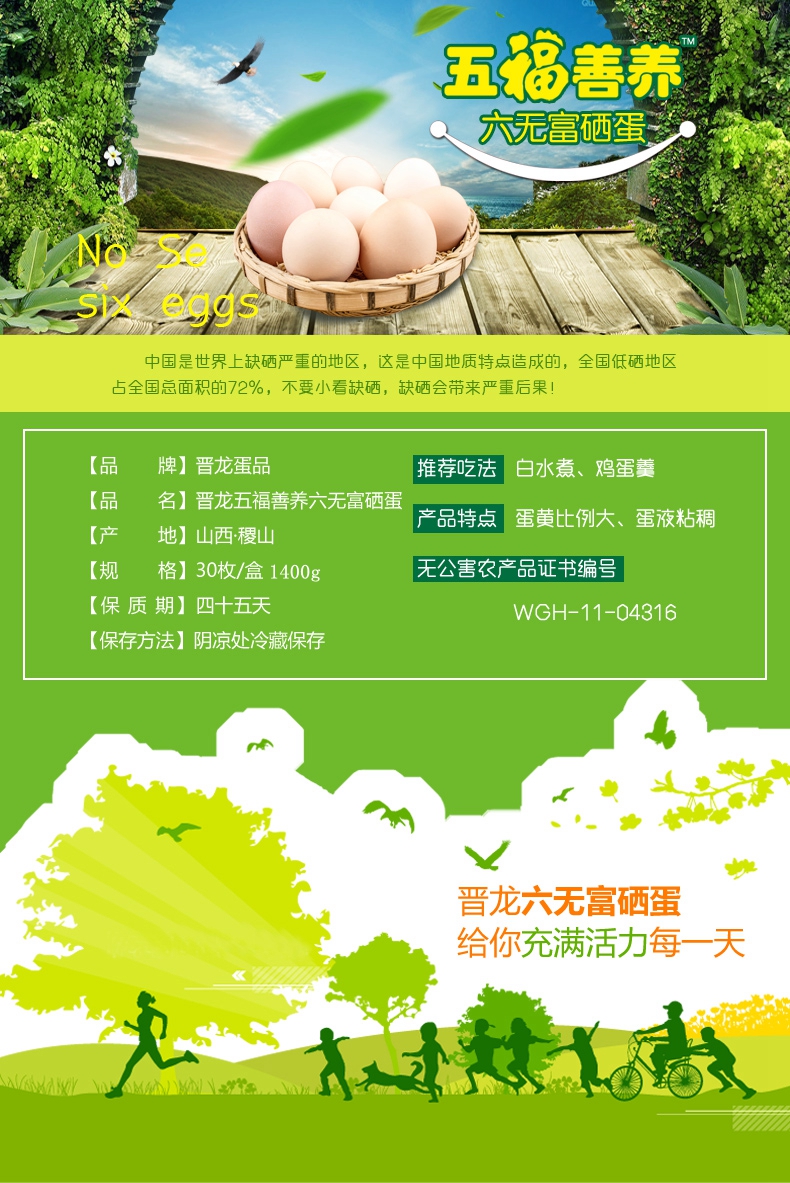 商品名称:【京东/顺丰配送】晋龙五福善养六无富硒鸡蛋礼盒30枚约1400g
