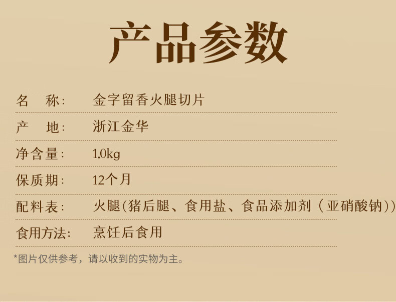 商品名称:金字留香火腿切片礼盒1kg