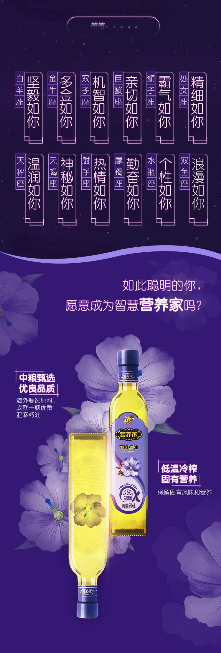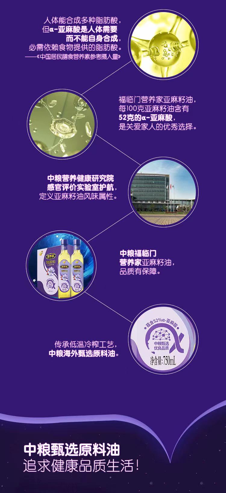 商品名称:【京东/德邦配送】中粮福临门营养家亚麻籽油礼盒750ml*2瓶