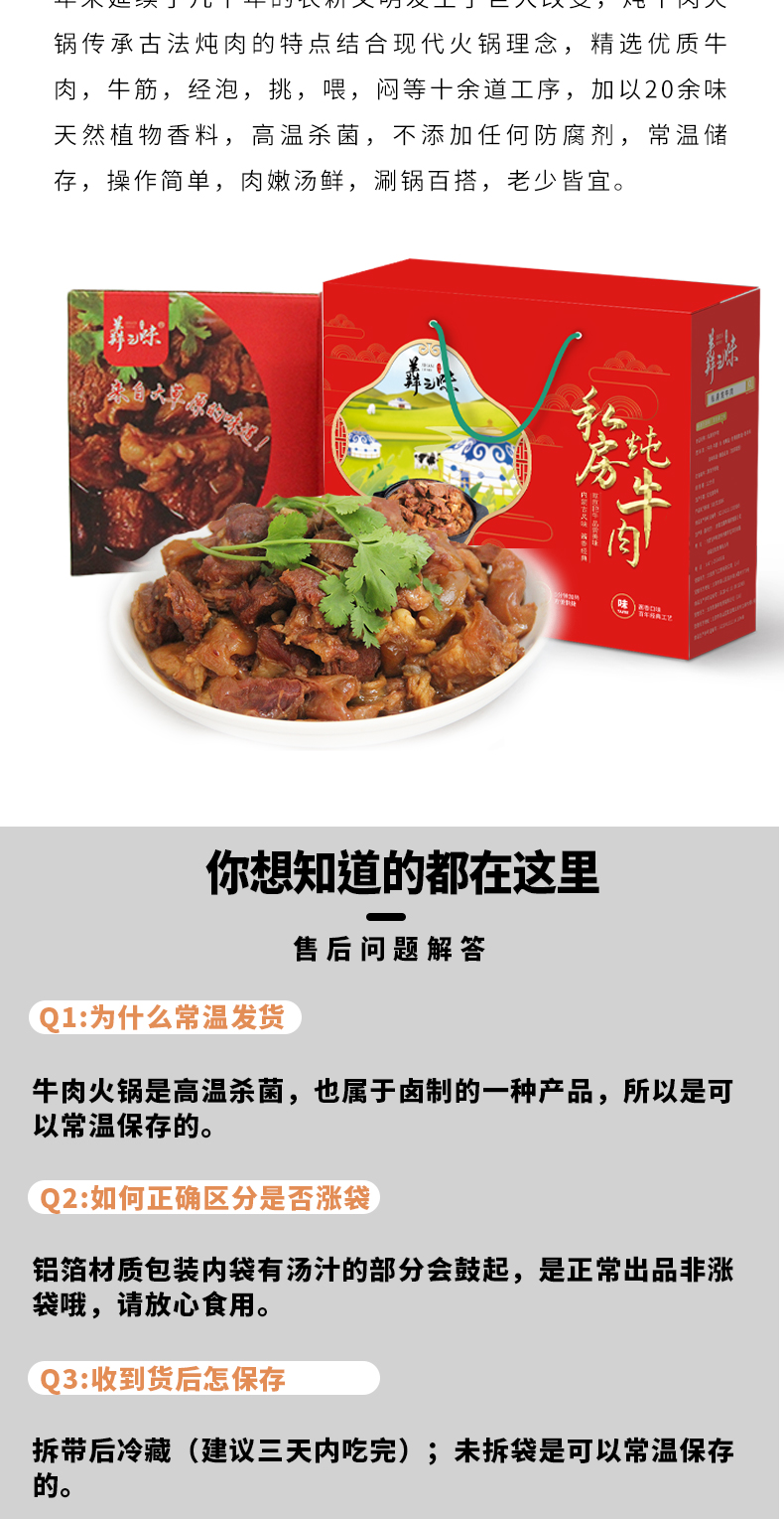 商品名称:【京东/顺丰配送】羴之味私房炖牛肉礼盒2000g