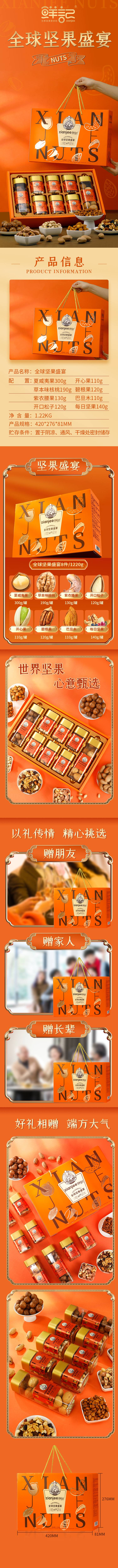 商品名称:xianjee/鲜记全球坚果盛宴坚果礼盒1220g