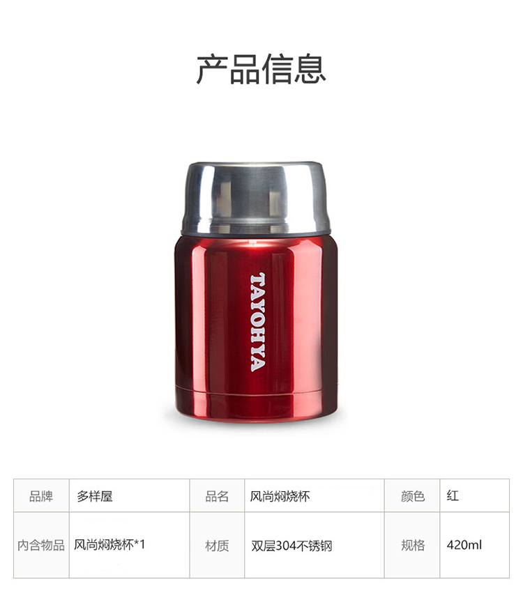 商品名称:TAYOHYA/多样屋420毫升风尚焖烧杯-红色