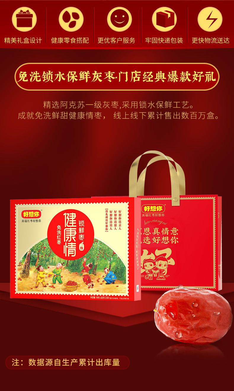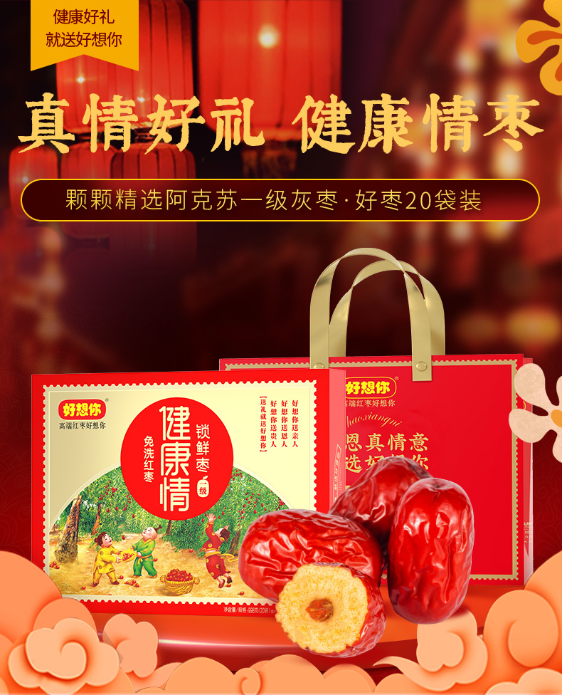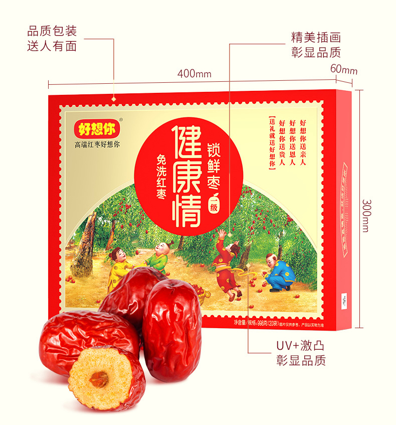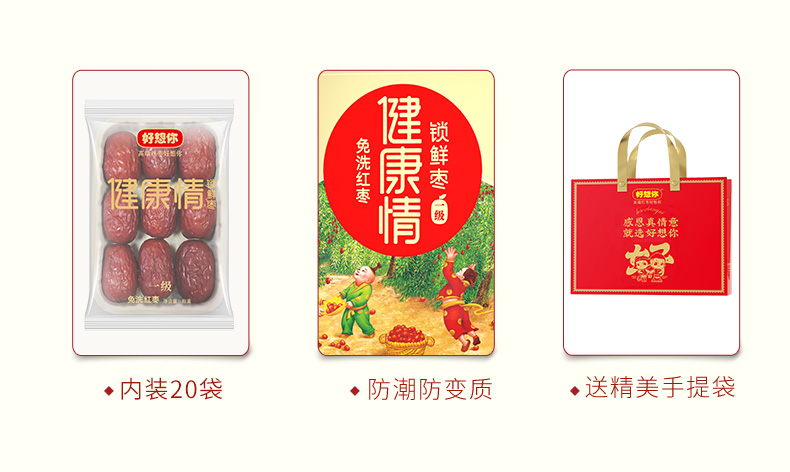 商品名称:好想你健康情一级锁鲜免洗红枣礼盒998g