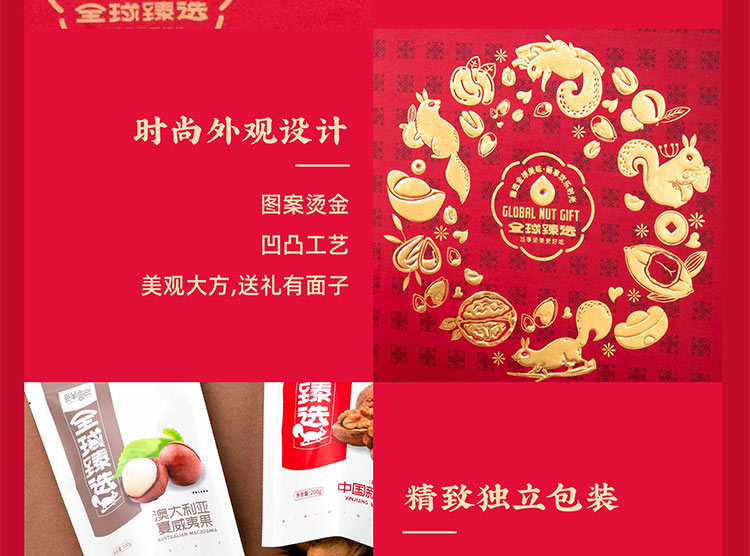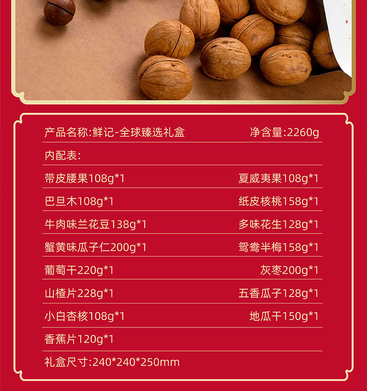商品名称:xianjee/鲜记全球甄选坚果礼盒2260g