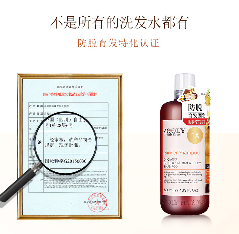 商品名称:ZOOLY/卓蓝雅生姜防脱育发洗发水800ml