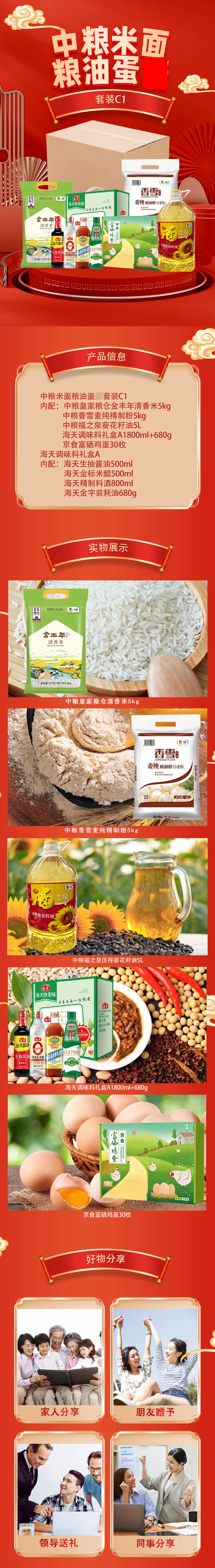 中粮海天京食米面粮油鸡蛋套装C1款约11.88kg+6.8L