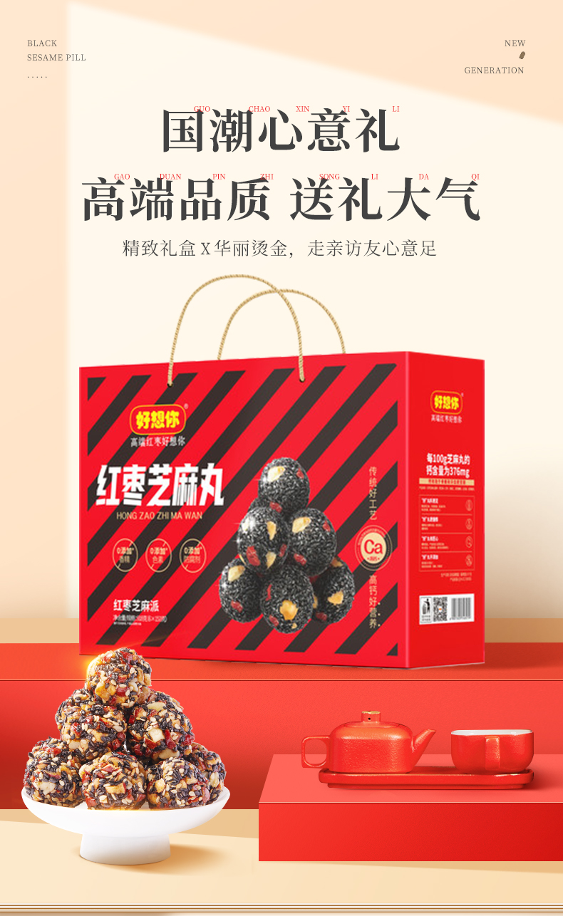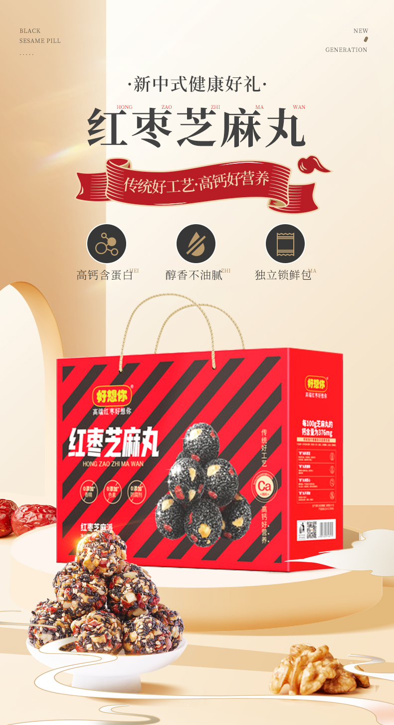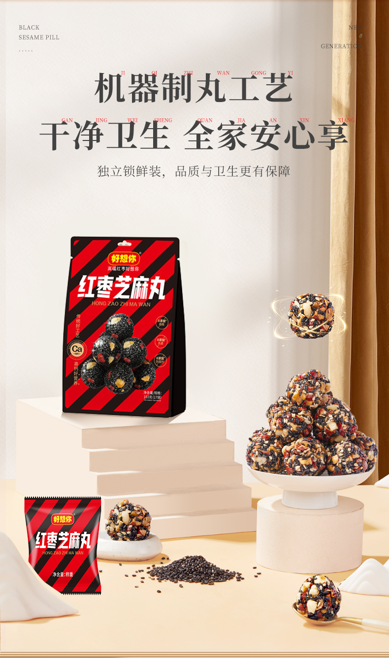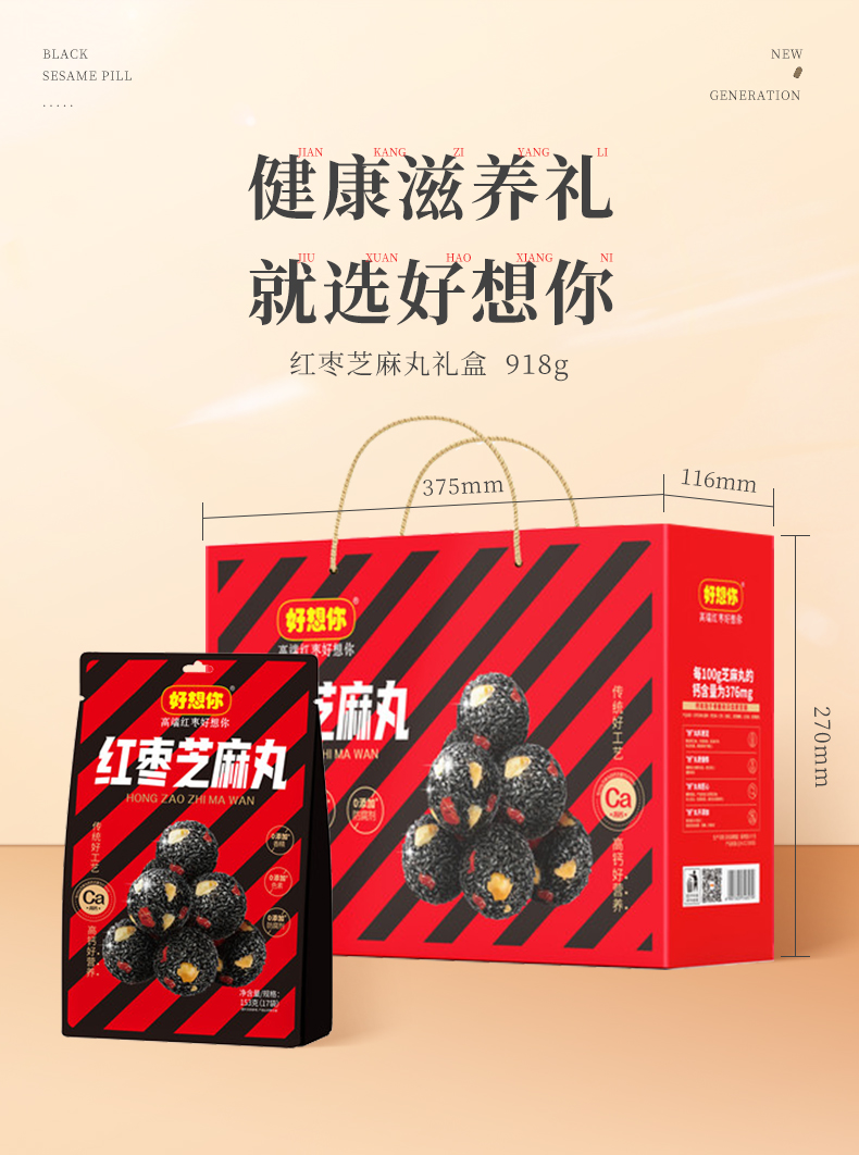 商品名称:好想你红枣芝麻丸整箱918g
