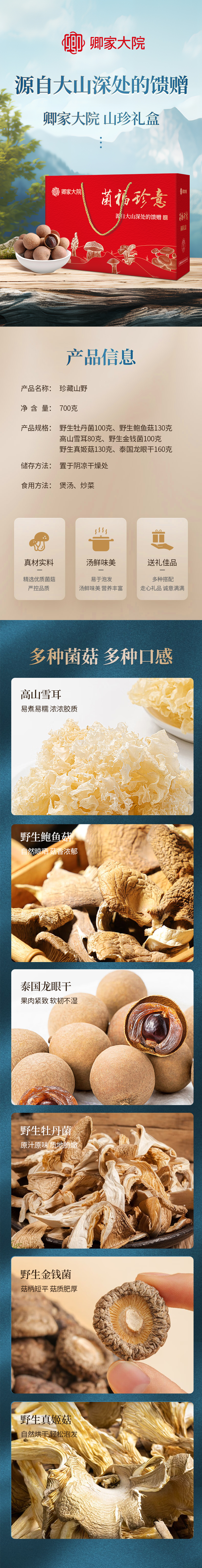 商品名称:卿家大院菌福珍意珍藏山野干货礼盒700g