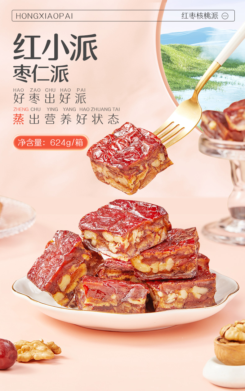 商品名称:好想你红小派红枣核桃派整箱624g