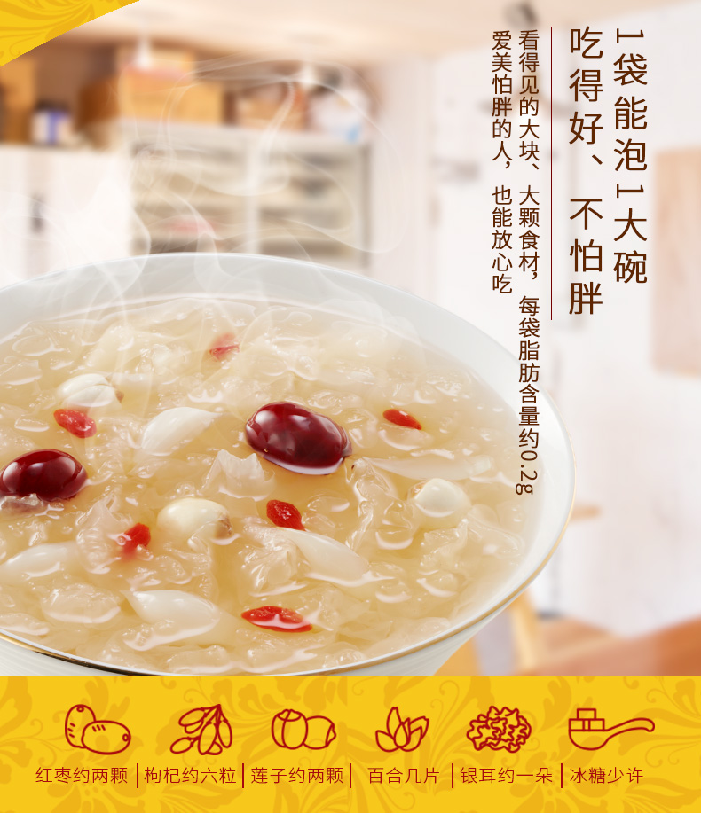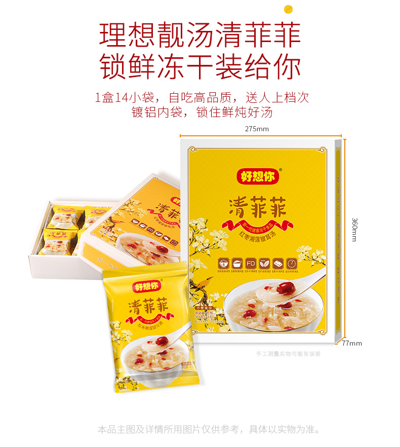 商品名称:好想你清菲菲红枣湘莲冻干银耳汤礼盒26g*14袋