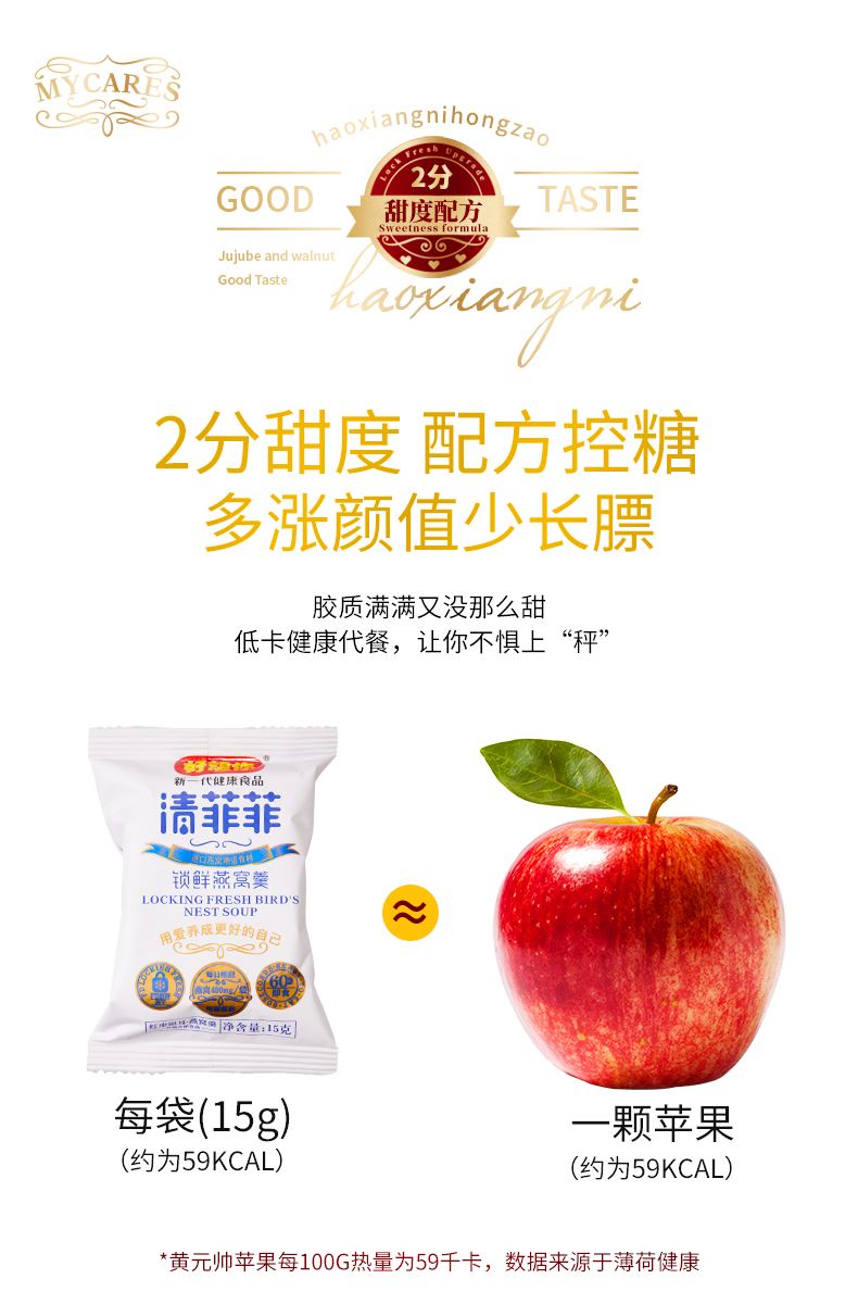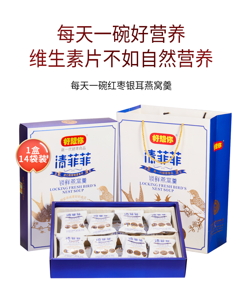 商品名称:好想你清菲菲红枣银耳冻干燕窝羹礼盒15g*14袋