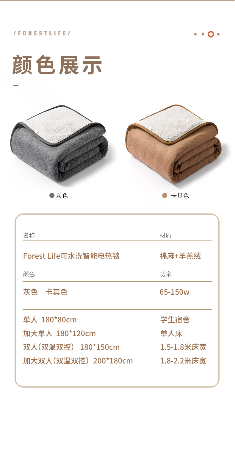 商品名称:forest life可水洗羊羔绒智能电热毯