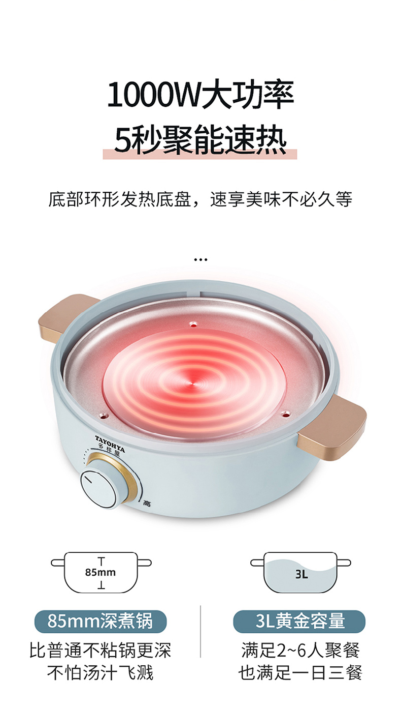 商品名称:TAYOHYA/多样屋3升迷你多功能火锅JHG-EB100