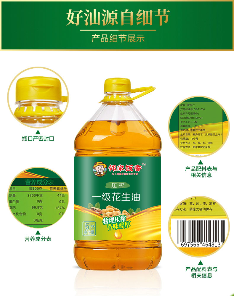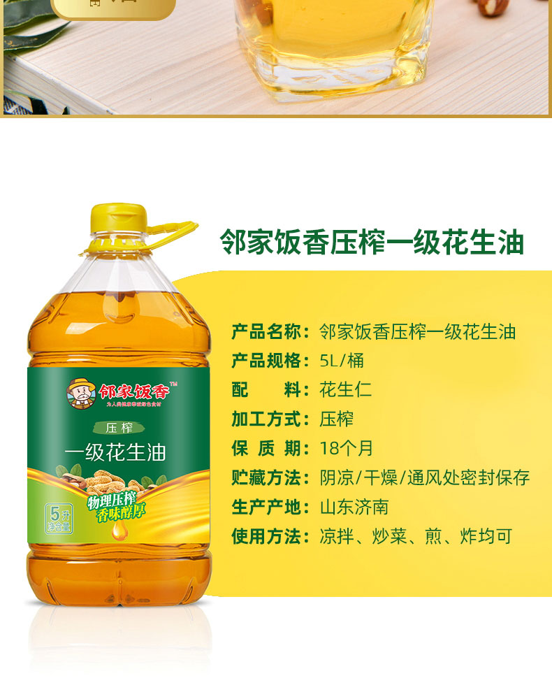 商品名称:邻家饭香压榨一级浓香花生油5L