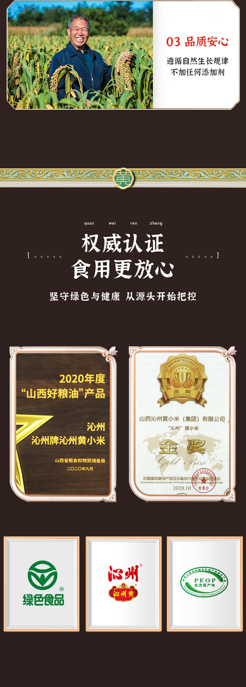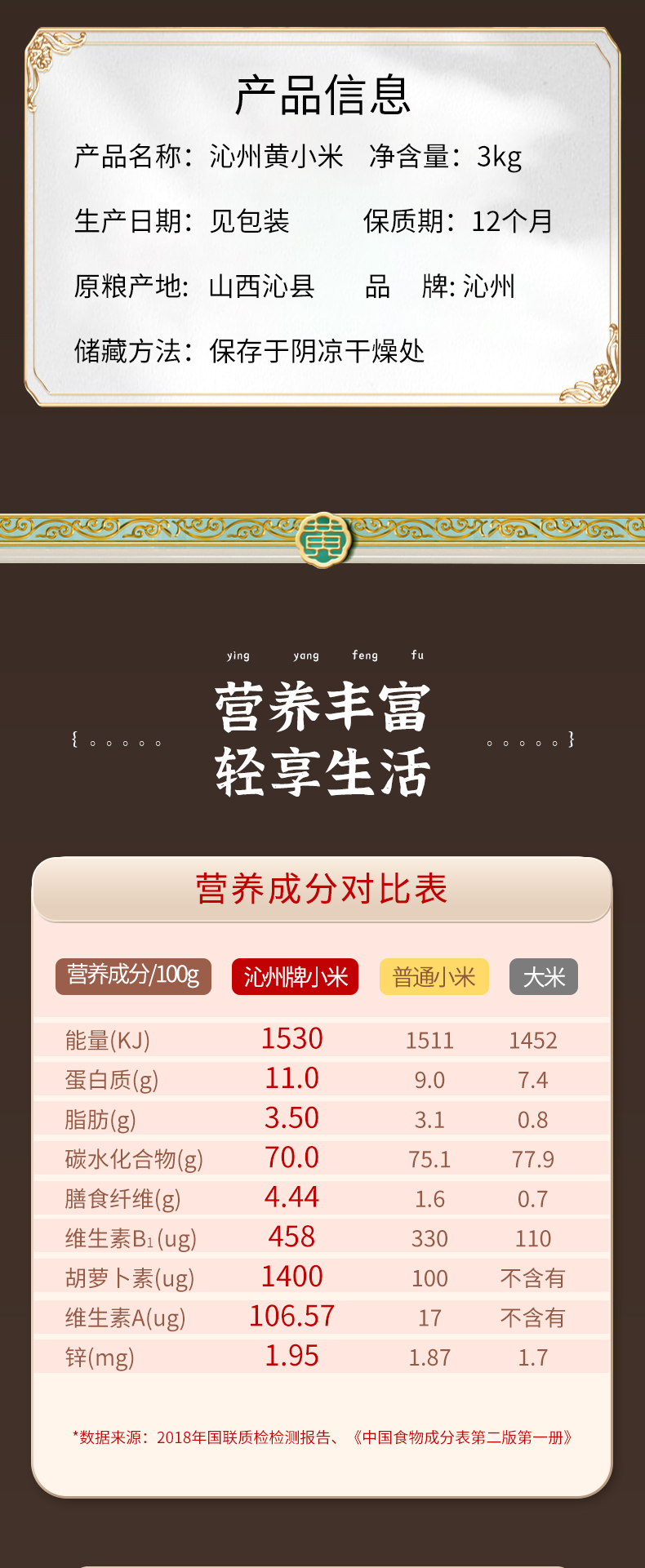 商品名称:沁州牌沁州黄小米充氮礼盒3kg