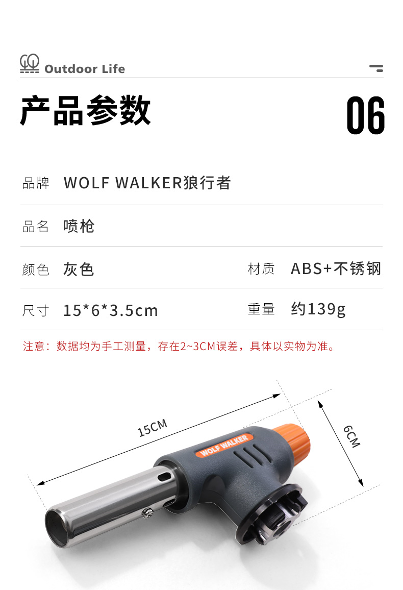 商品名称:WOLF WALKER/狼行者卡式气罐喷枪-灰色LXZ-3149-1301
