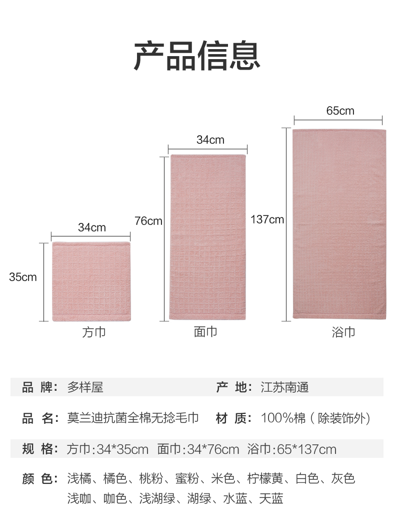 商品名称:TAYOHYA/多样屋莫兰迪抗菌全棉无捻毛巾2条装