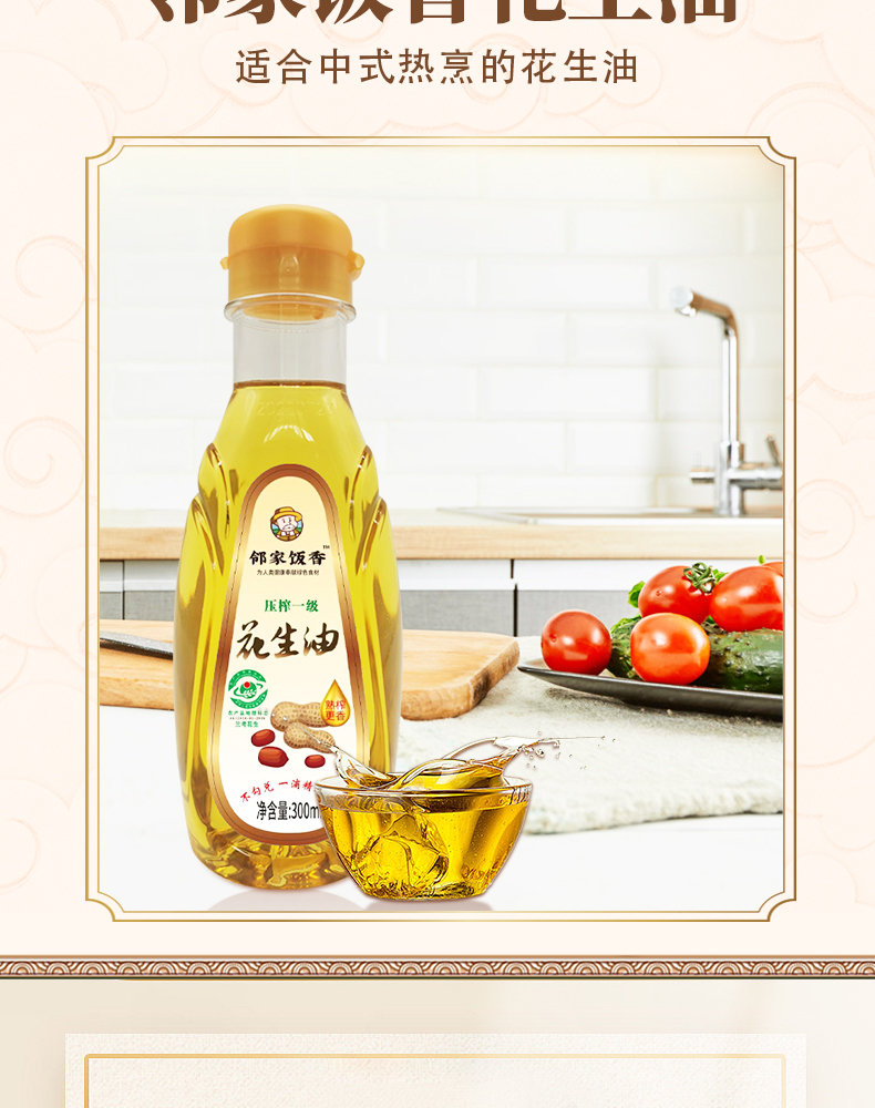 商品名称:邻家饭香压榨一级花生油300ml