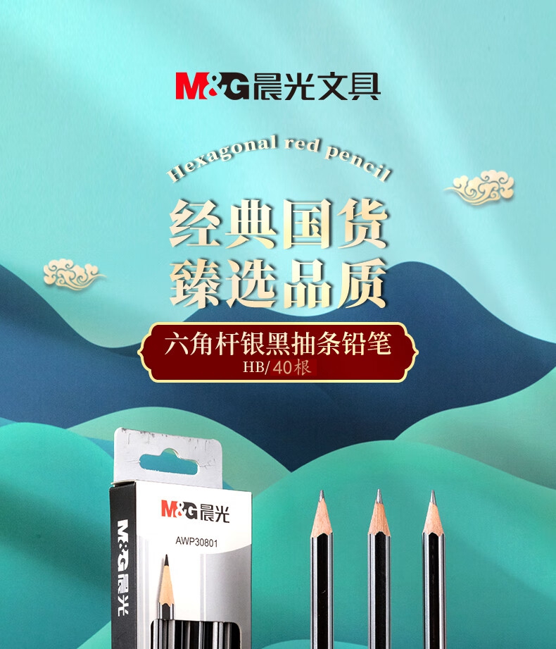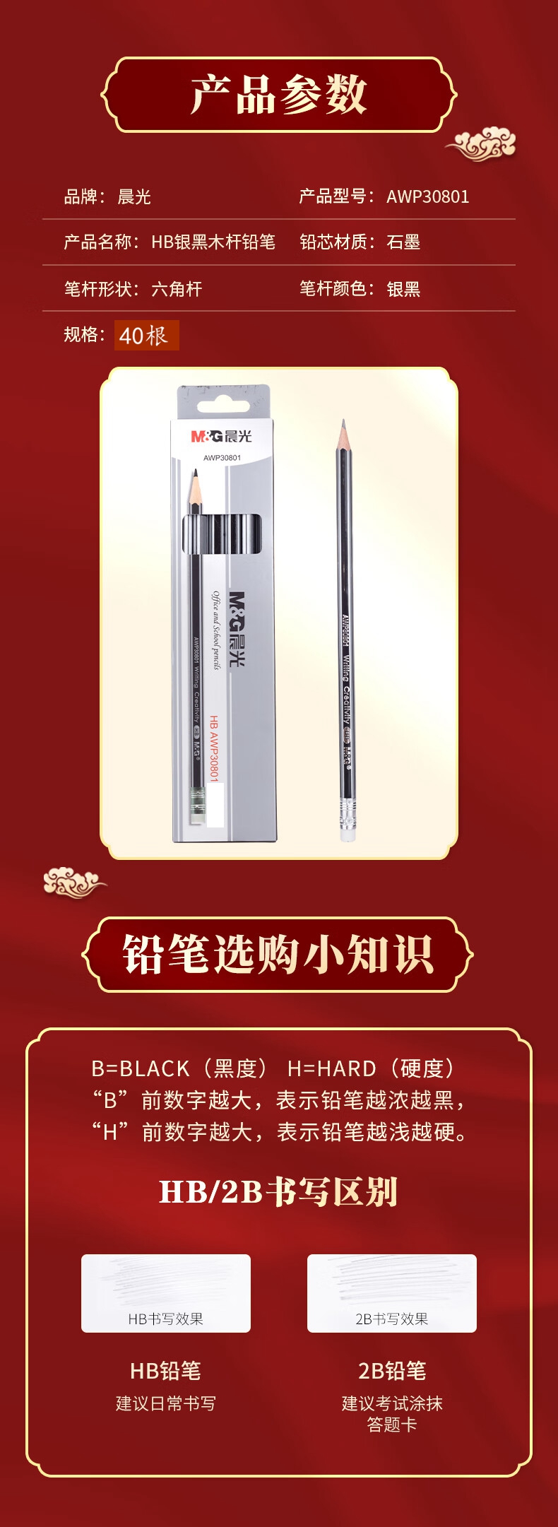 商品名称:晨光HB银黑木杆六角铅笔40根AWP30801