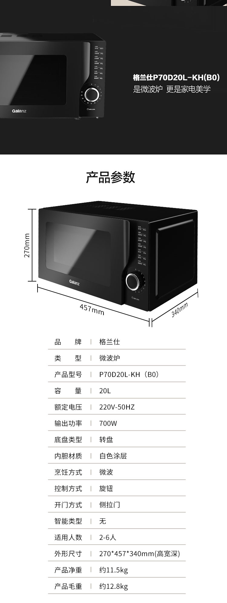 商品名称:Galanz/格兰仕20升微波炉P70D20L-KH(B0)
