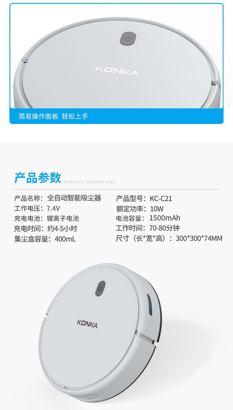 商品名称:KONKA/康佳全自动智能扫地机器人KC-C21