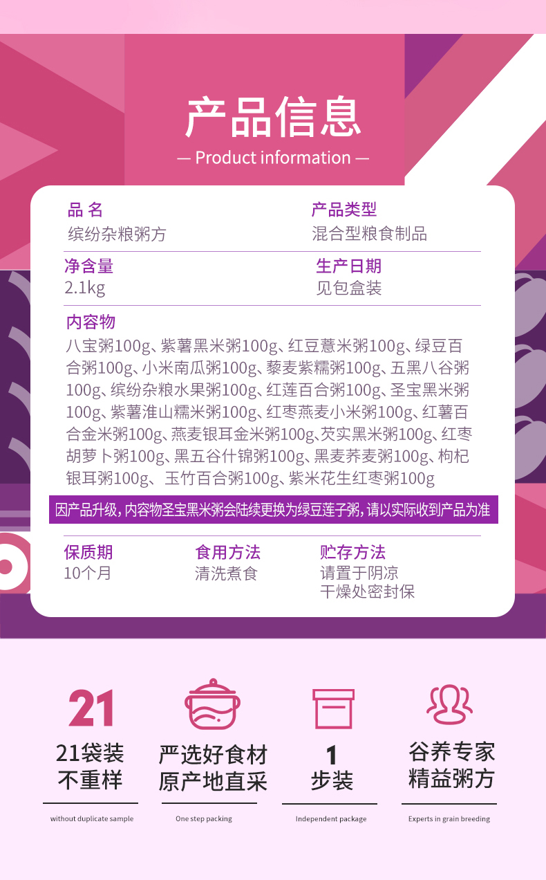 商品名称:燕之坊21日缤纷杂粮粥料礼盒2100g