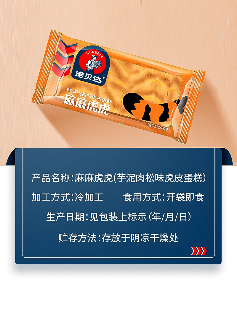 商品名称:诺贝达麻麻虎虎芋泥肉松味虎皮蛋糕整箱500g