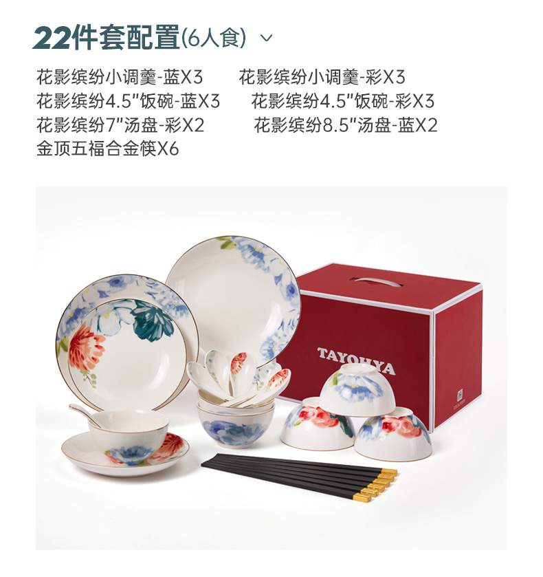 商品名称:TAYOHYA/多样屋花影缤纷餐具22件套