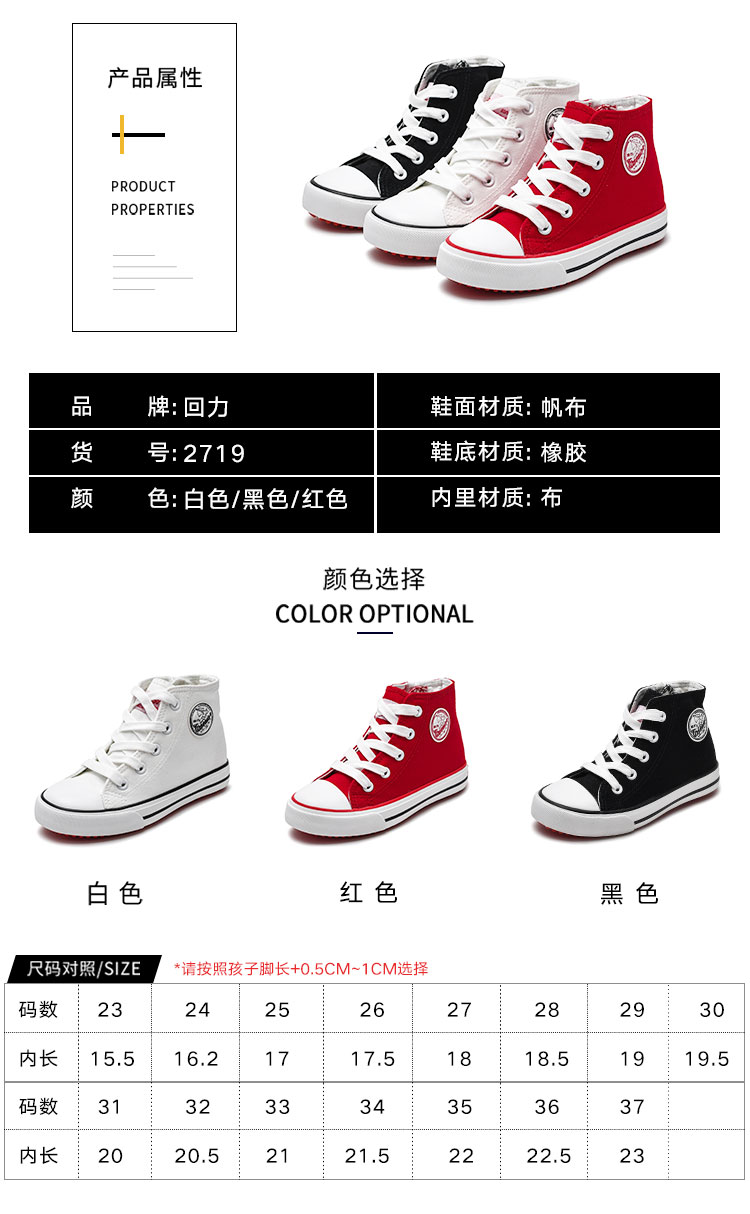 商品名称:【断码捡漏】春季时尚百搭儿童高帮帆布鞋舒适潮流板鞋户外休闲鞋 631107
