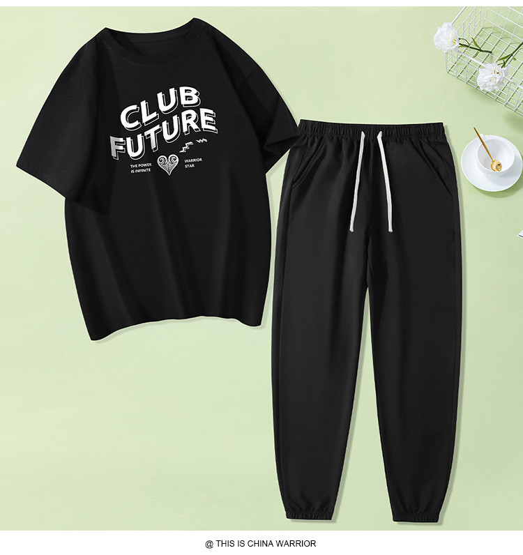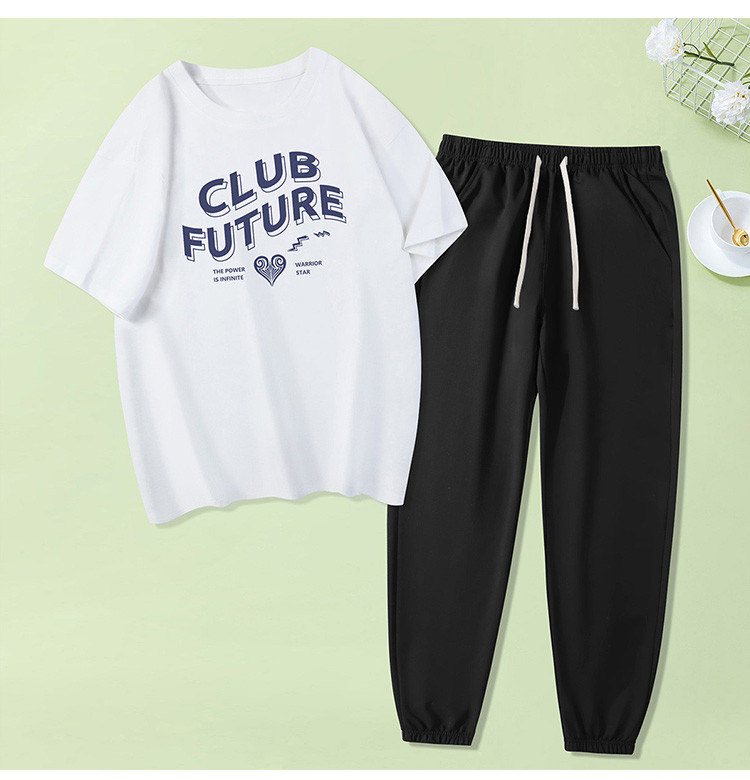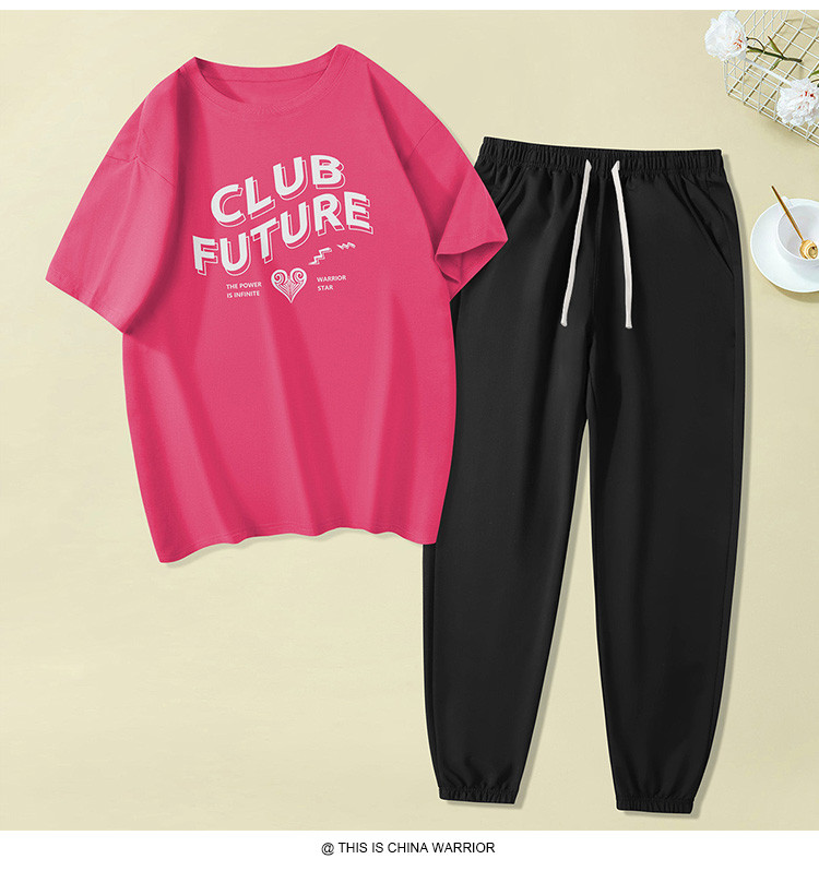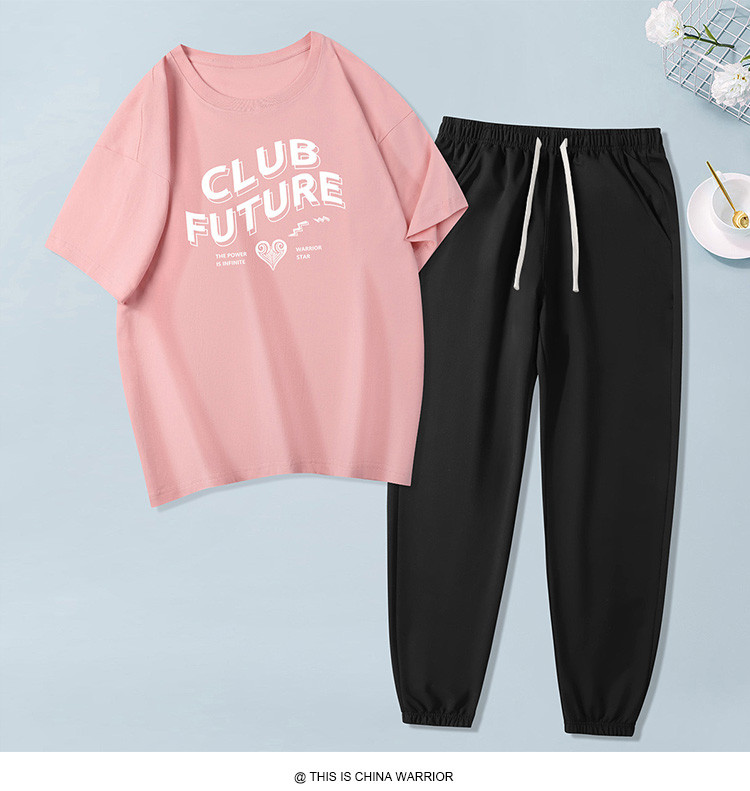 商品名称:女装夏季宽松短袖女式t恤运动套装女休闲束脚长裤两件套 568531