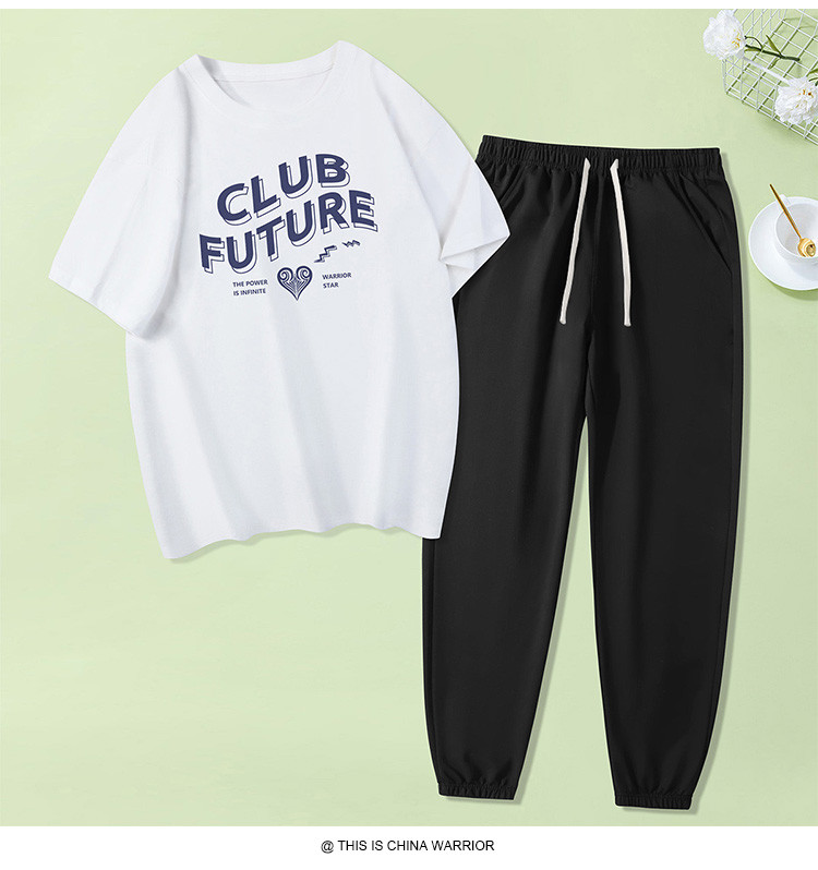 【两件套装】夏季运动套装女时尚纯棉圆领T恤两件套束脚裤女 746259
