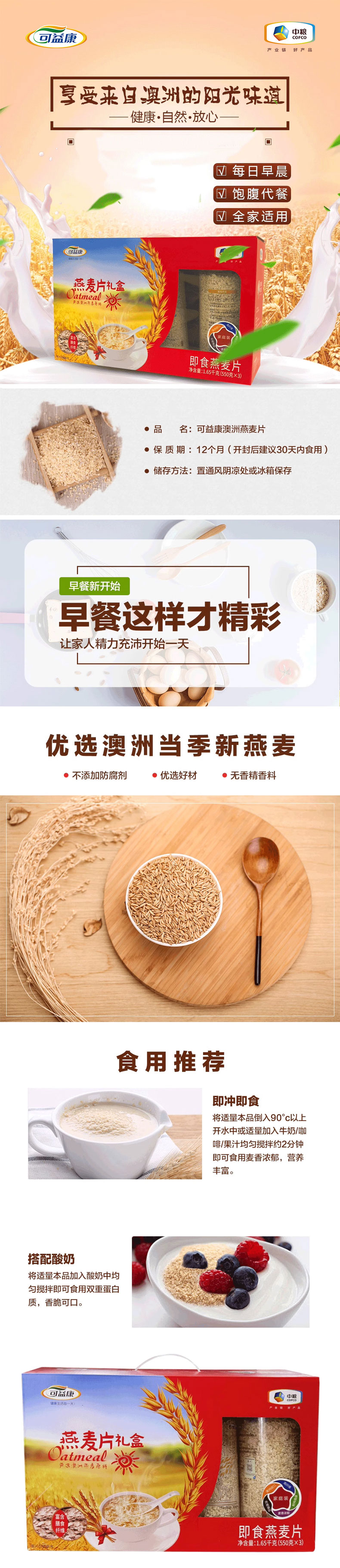 商品名称:中粮可益康桶装即食燕麦片礼盒1650g