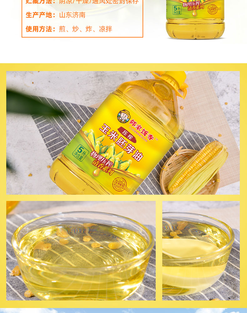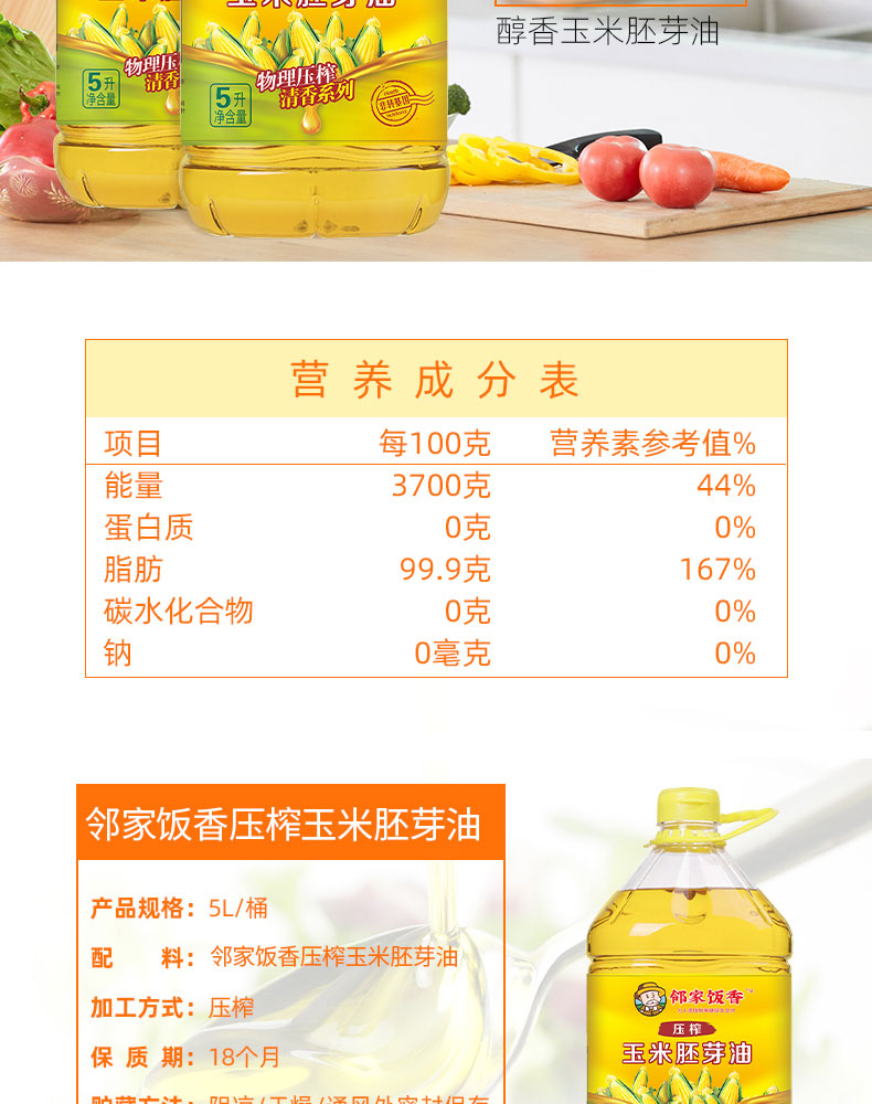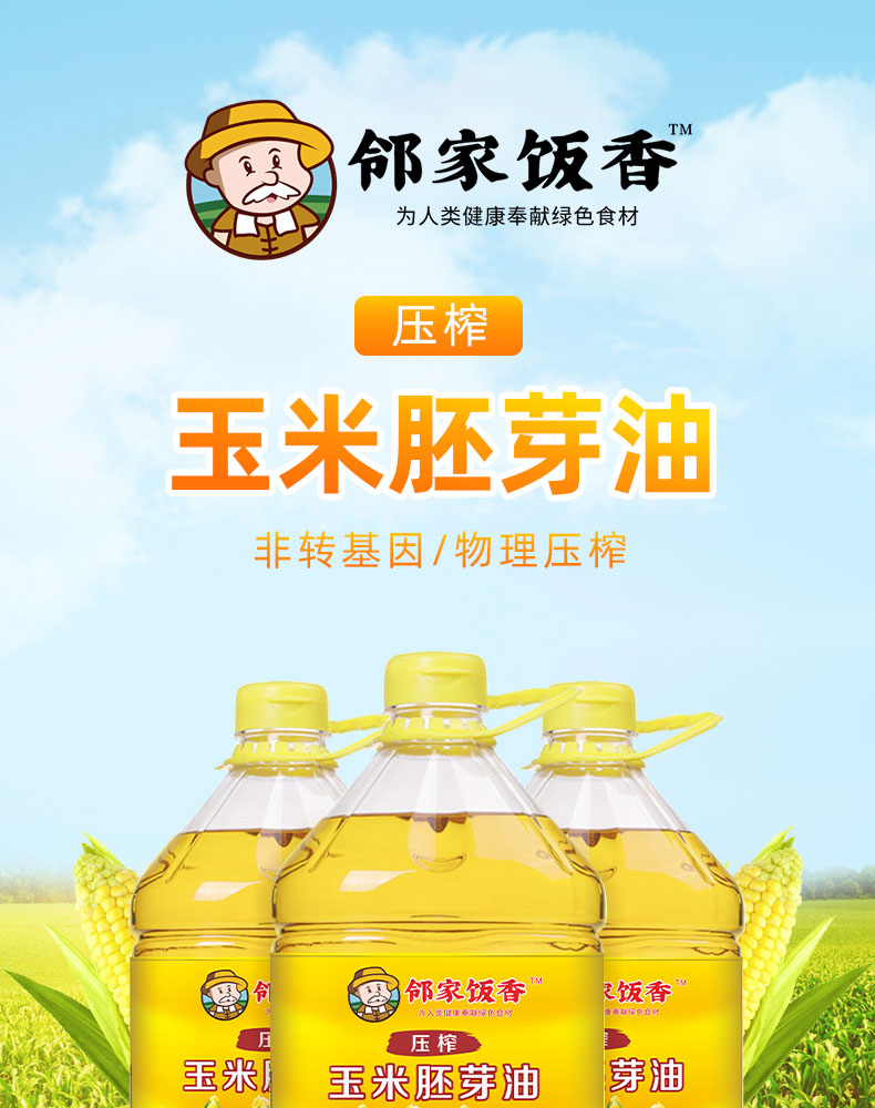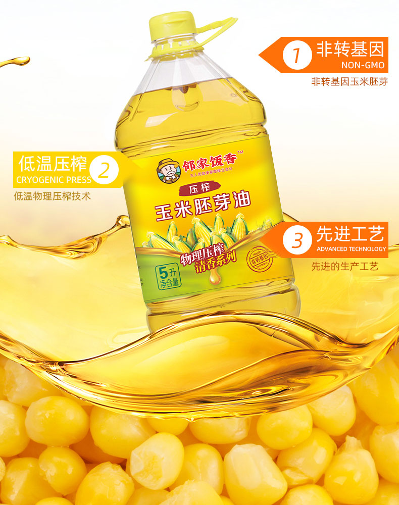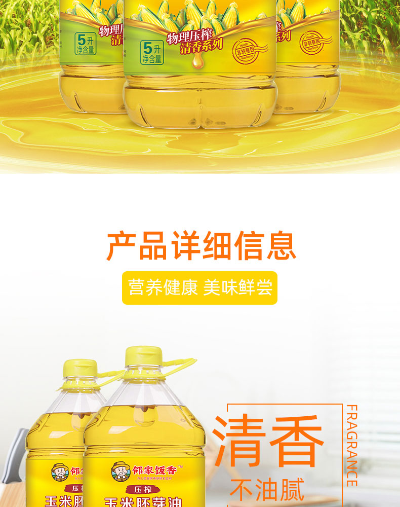 商品名称:邻家饭香非转基因清香系列压榨玉米胚芽油5L