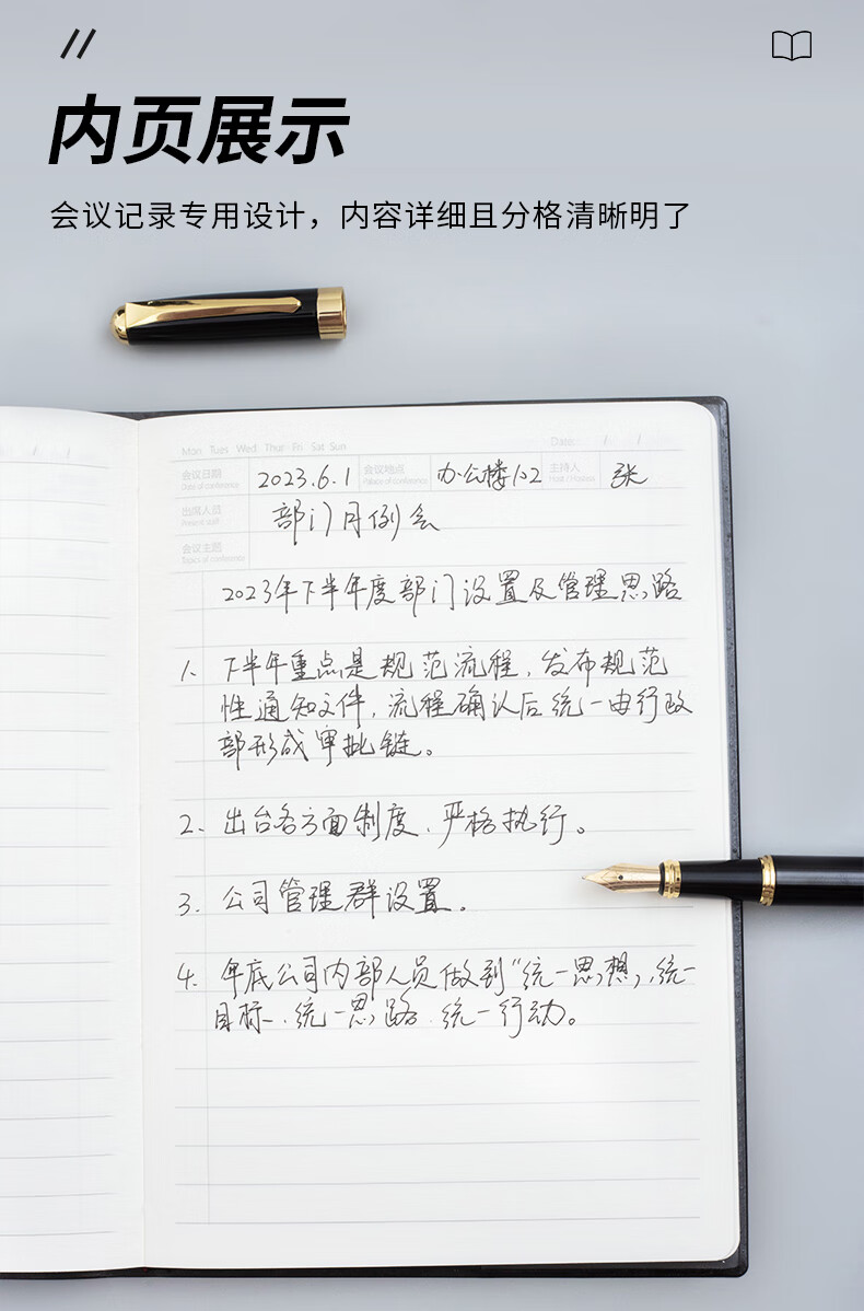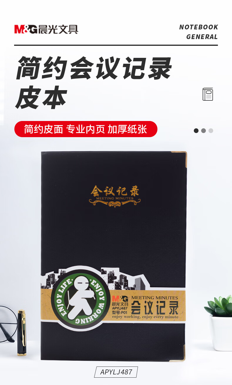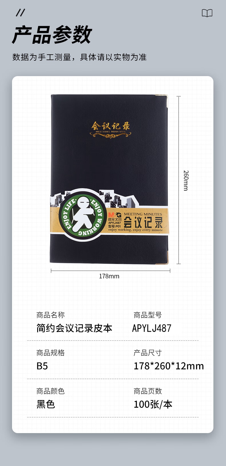 商品名称:晨光B5简约会议记录皮本-黑色100张*2本APYLJ487