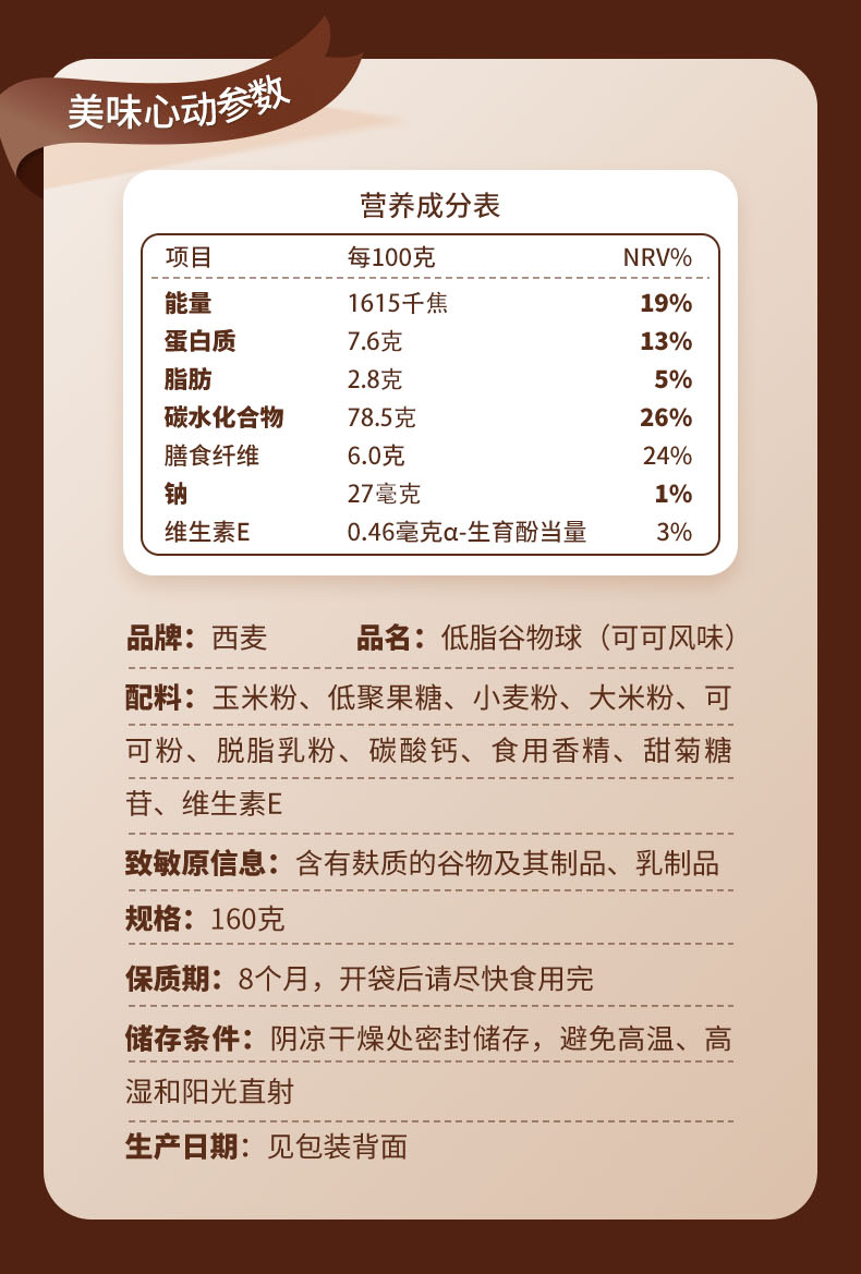 商品名称:SEAMILD/西麦低脂谷物球-可可味160g*3袋
