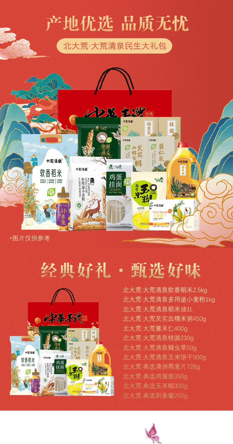 商品名称:北大荒大荒清泉民生大礼包318型6.758kg+1L