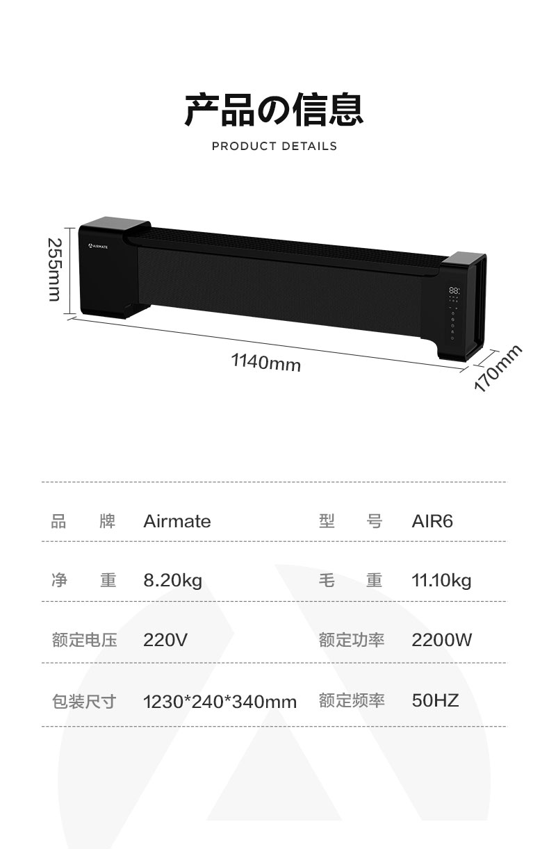 商品名称:Airmate/艾美特冬日焰火全屋电暖气AIR6