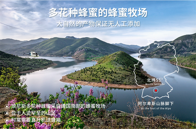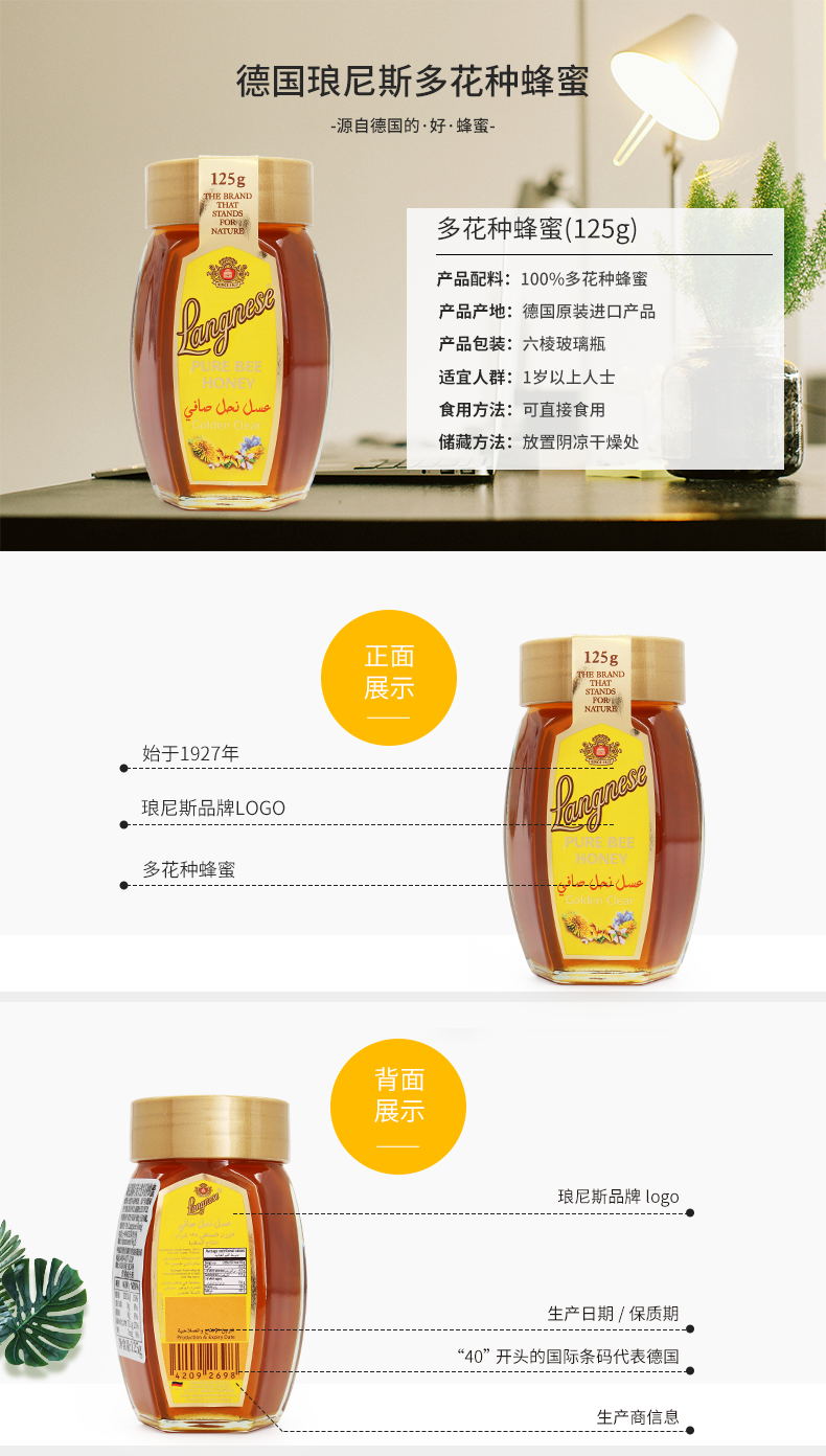 商品名称:琅尼斯德国进口天然多花种蜂蜜125g*3瓶