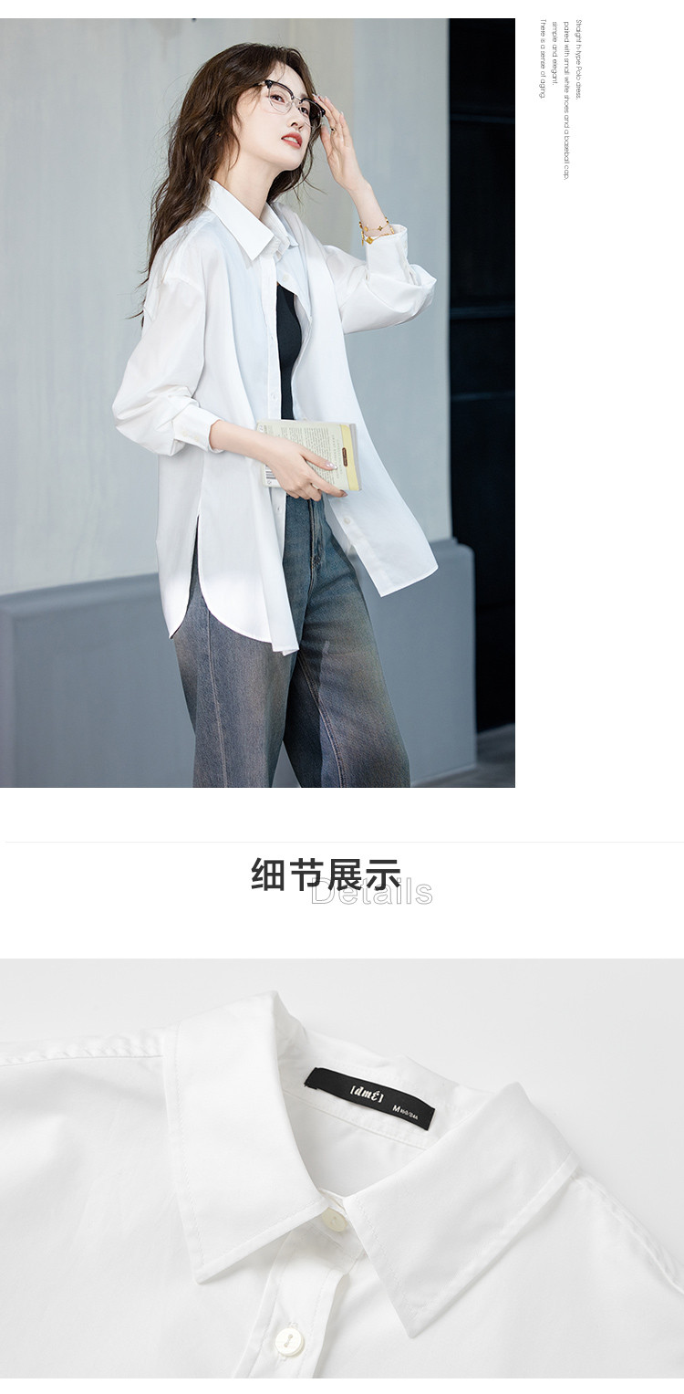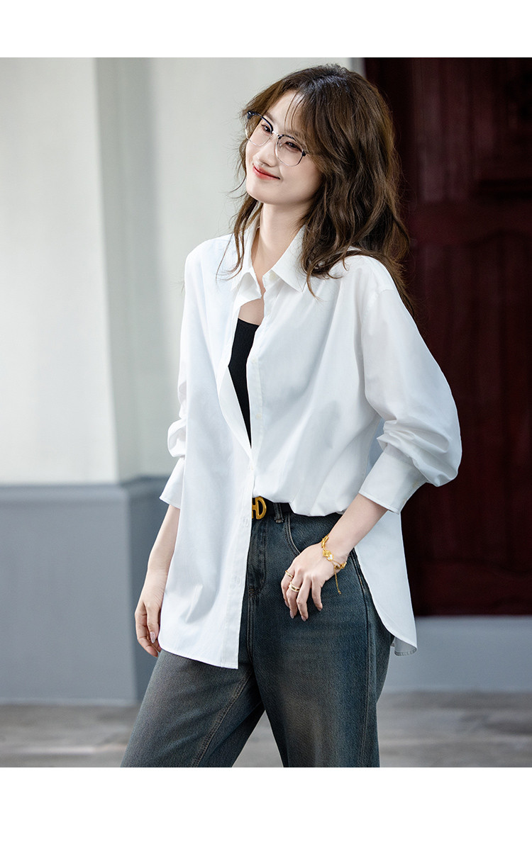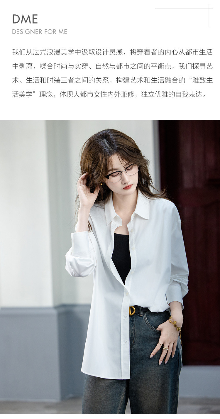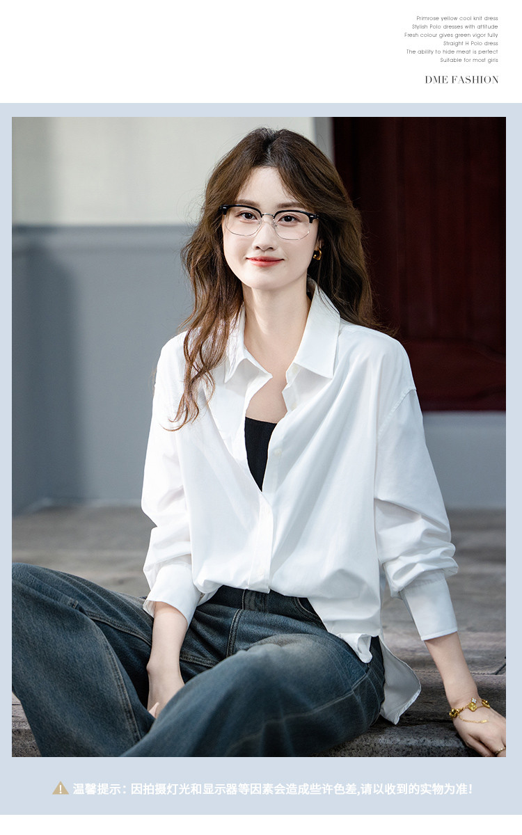 商品名称:【新贵小资风】秋季款翻领长袖衬衫棉质落肩简约衬衣女装上衣 470593