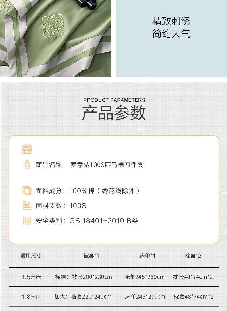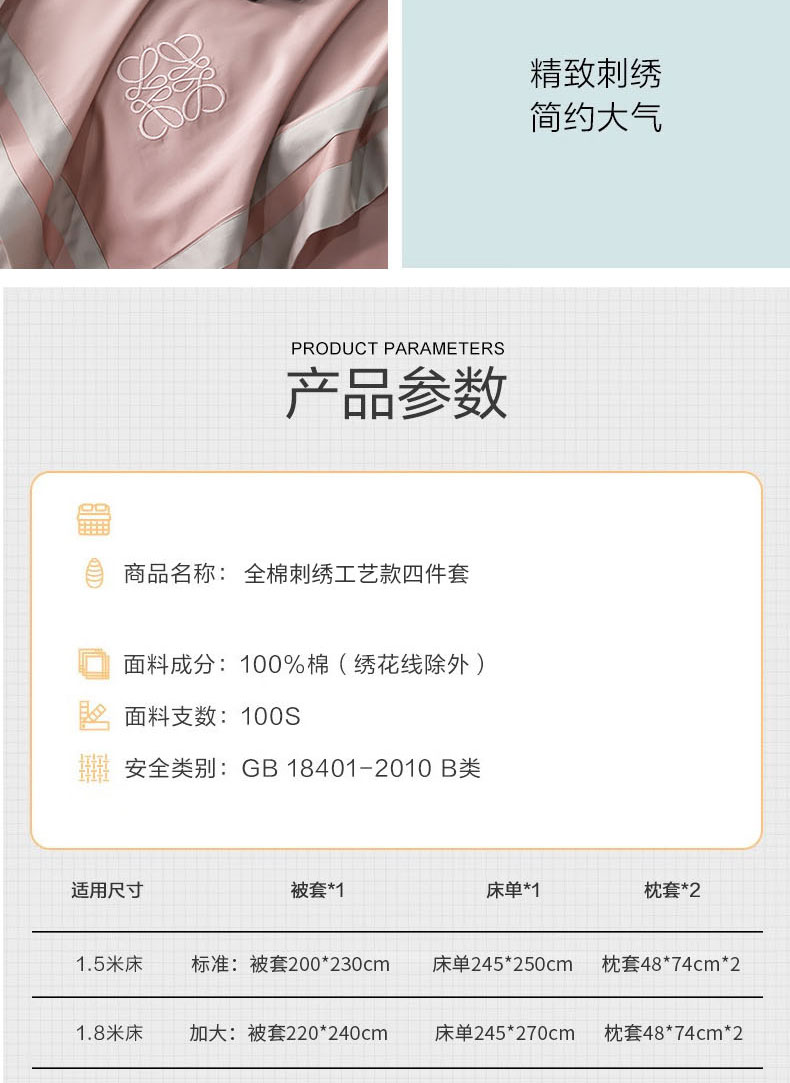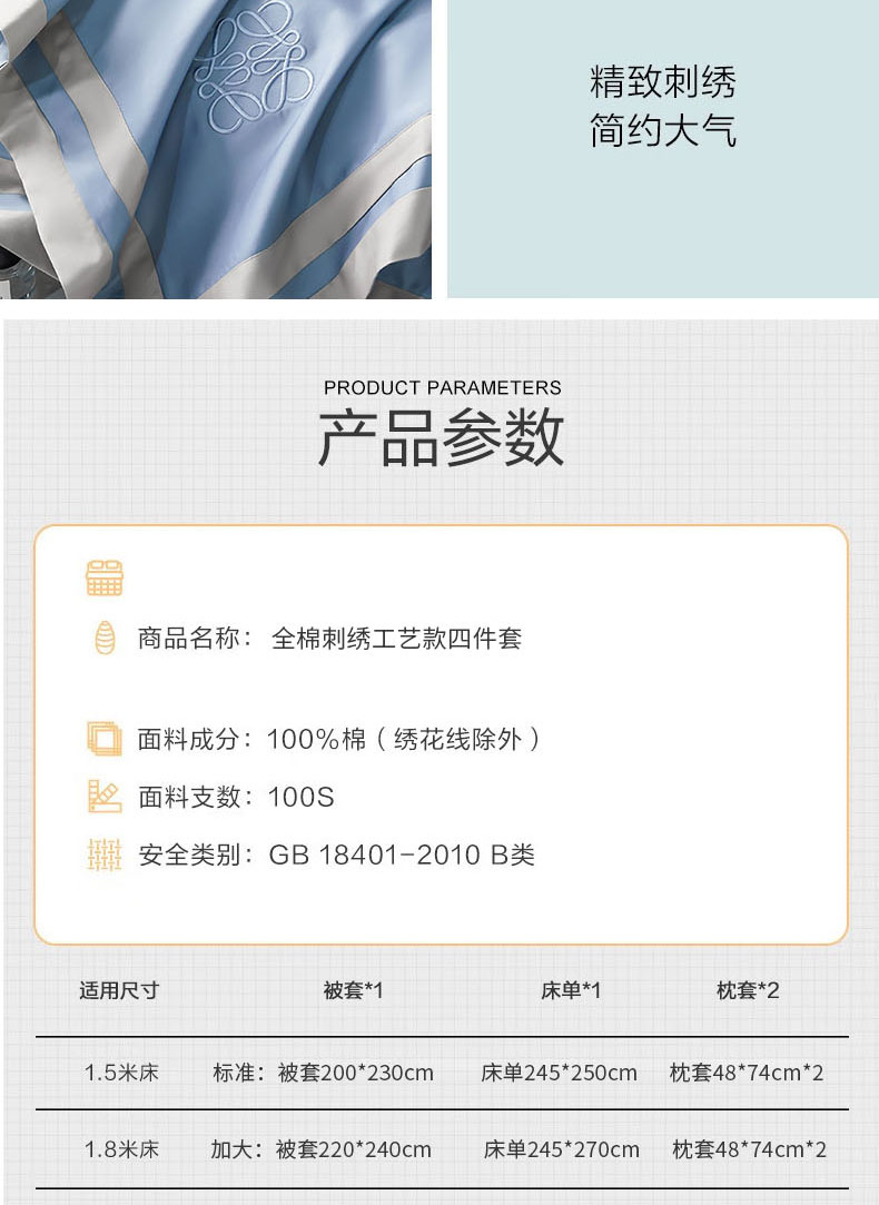 商品名称:FIRS/杉杉罗意威全棉刺绣工艺款床品四件套