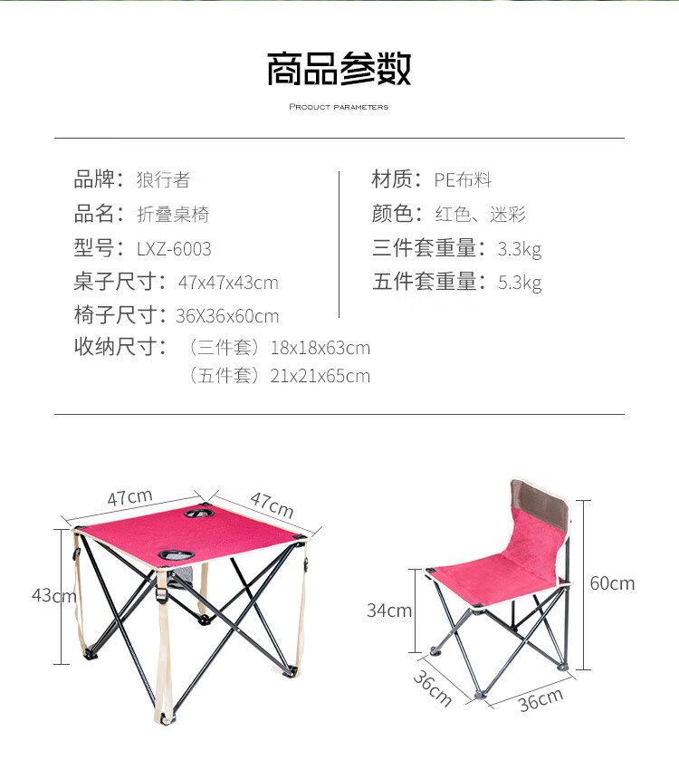 商品名称:WOLF WALKER/狼行者户外折叠桌椅套LXZ-6003-1