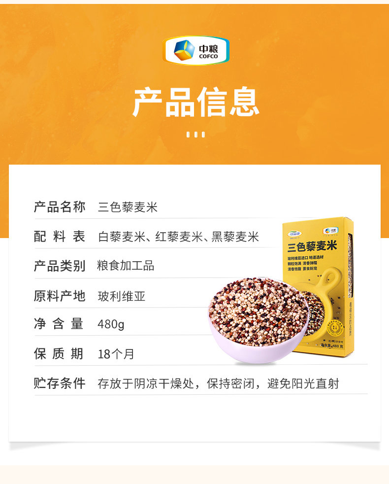 商品名称:中粮可益康三色藜麦米480g