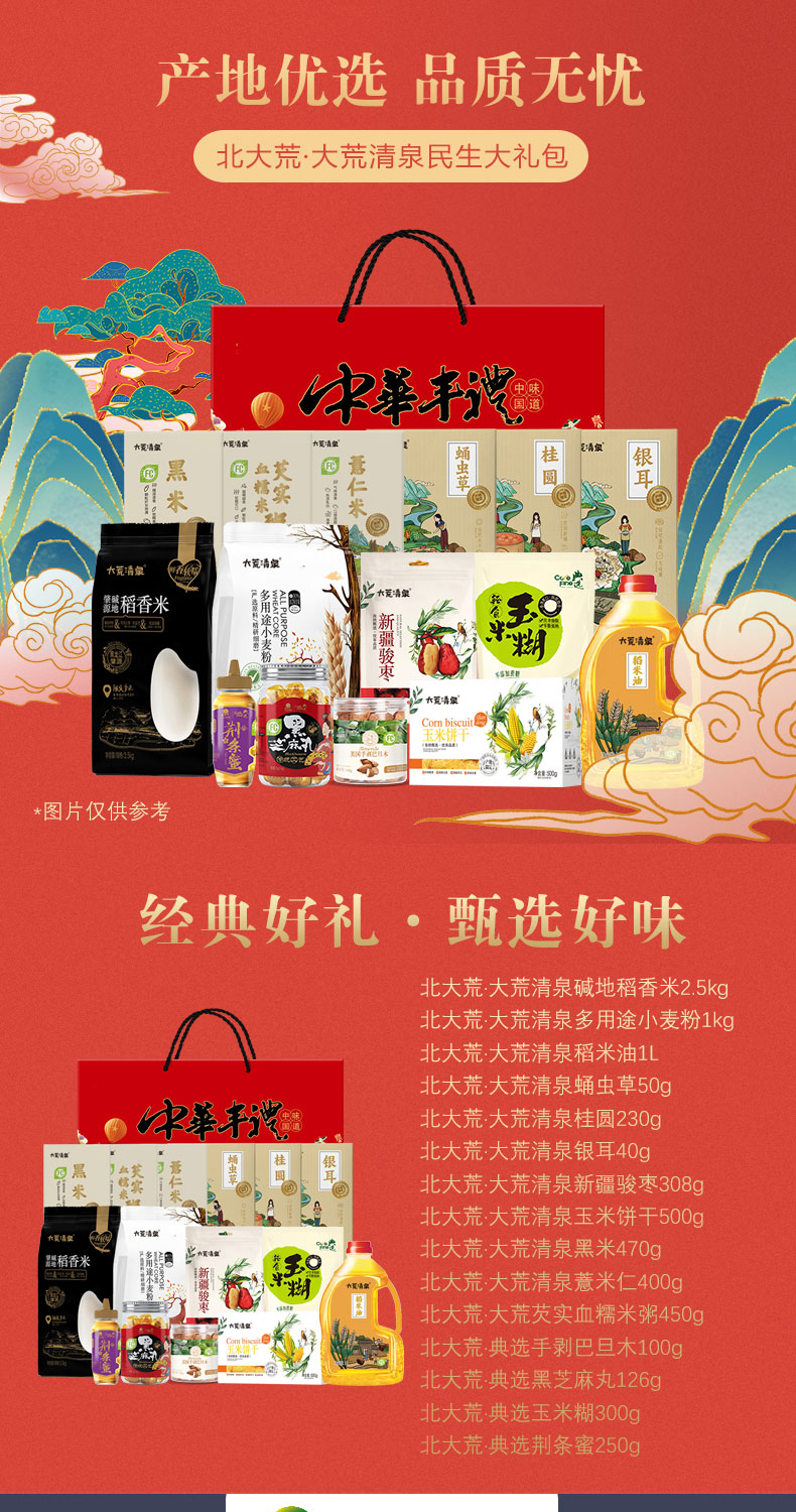 商品名称:北大荒大荒清泉民生大礼包398型6.724kg+1L