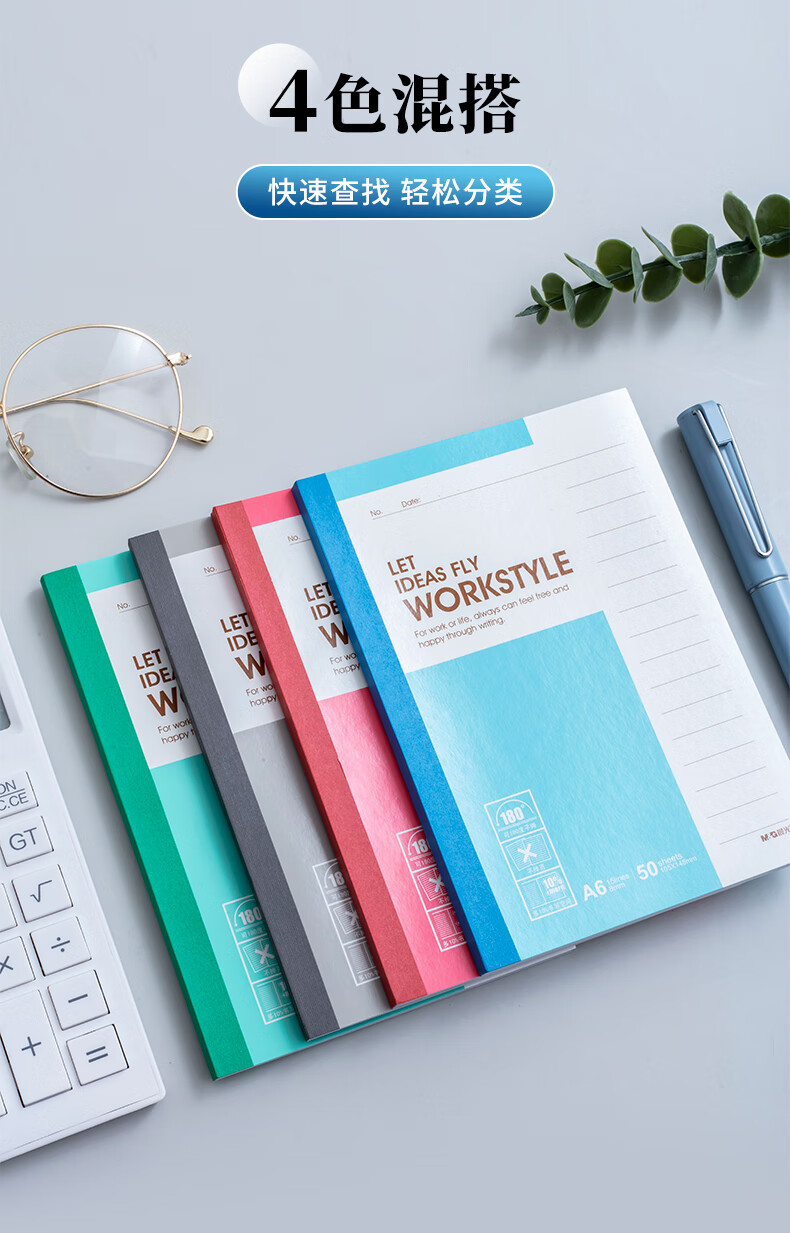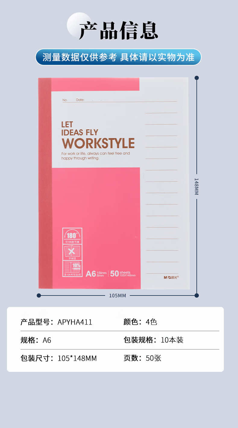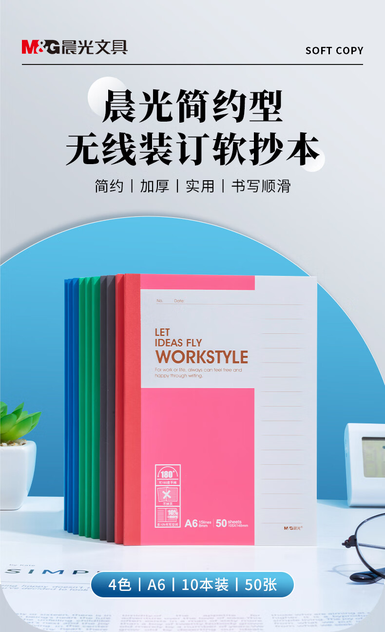 商品名称:晨光A6简约型无线装订软抄本整包-4色50张*10本*2包APYHA411
