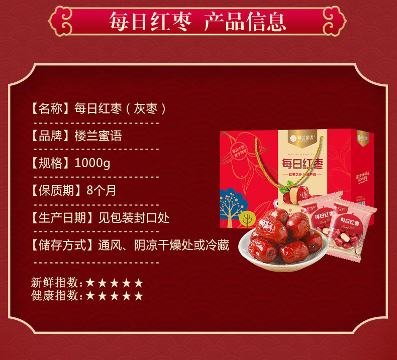 商品名称:HONEY WEST/楼兰蜜语每日红枣礼盒1000g