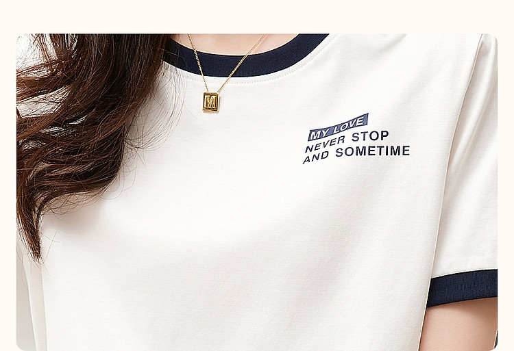 商品名称:【简约棉氨针织女式t恤】夏圆领字母撞色短袖t恤女 213825