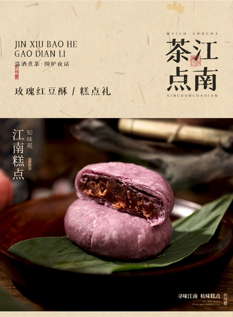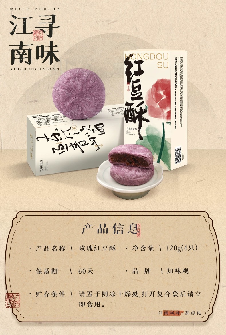 商品名称:知味观玫瑰红豆酥120g*3盒